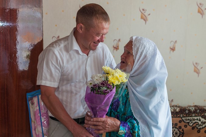С 90-летием труженицу тыла Закирову Мусавару