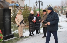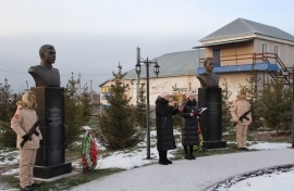 Собравшиеся почтили память героев минутой молчания. Завершилась церемония возложением цветов к бюстам Героев Советского союза Чекина Бориса Сергеевича и Савельева Федора Петровича.
