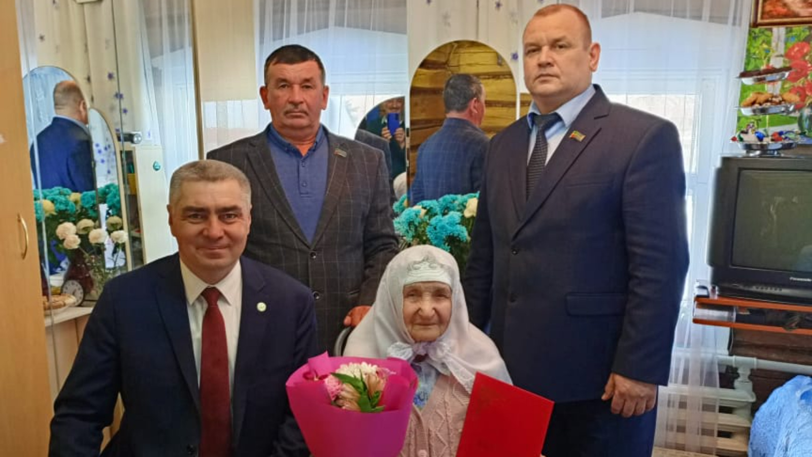 С юбилеем Шакирову Мониру Бургановну поздравили Глава Камско-Устьинского района Вазыхов Наиль Альбертович, заместитель главы Камско-Устьинского района Гиниятов Ильнур Тагирович и глава Старобарышевского сельского поселения Зиганшин Ильшат Рахимзянович.