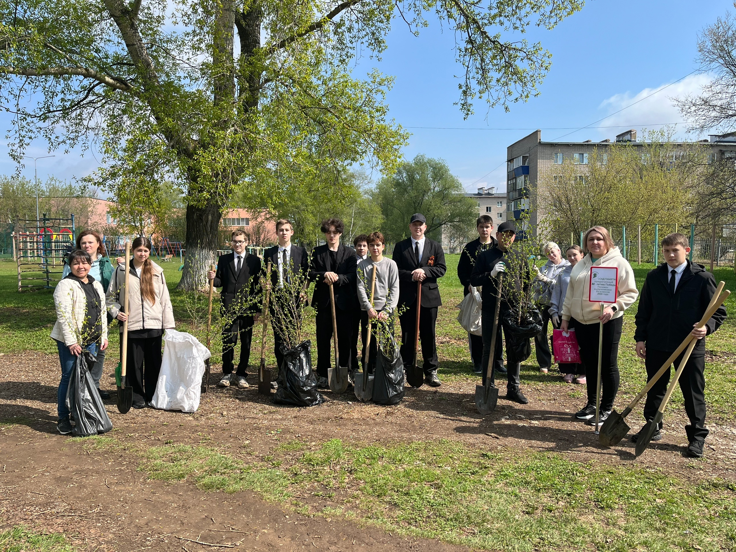 Увековечить имена погибших героев, а вместе с тем озеленить школьную территорию решили выпускники 9-х классов совместно с родителями, приняв участие в акции "Сад Памяти", посвященной 80-летию Победы в Великой Отечественной войне.