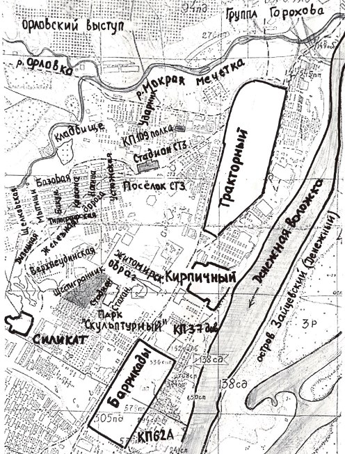 КП 37-й дивизии разместили между кирпичным заводом и Баррикадами, в овраге, поблизости от КП армии.