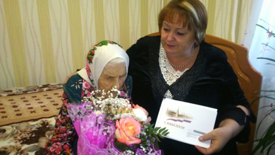 Поздравительное письмо Президента РФ и подарок вместе с букетом цветов от главы района Равиля Кузюрова ей вручила заместитель главы муниципального района Флюра Нугуманова. Столетняя Магсума Абзяббарова пережила Великую Отечественную войну и послевоенную разруху, испытала на себе все тяготы и лишения. – С божьей помощью дожила до сегодняшней красивой, благополучной жизни, – говорит юбиляр. За такое внимание к себе и подарки она говорит всем большое спасибо. tatmedia.ru
