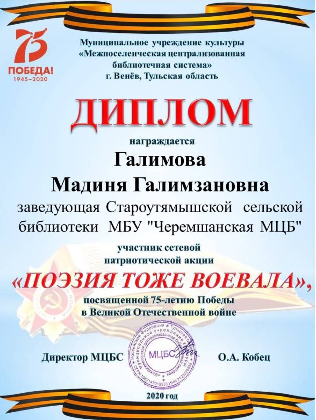 Староутямышская библиотека Черемшанского района присоединилась к Акции "Поэзия тоже воевала"