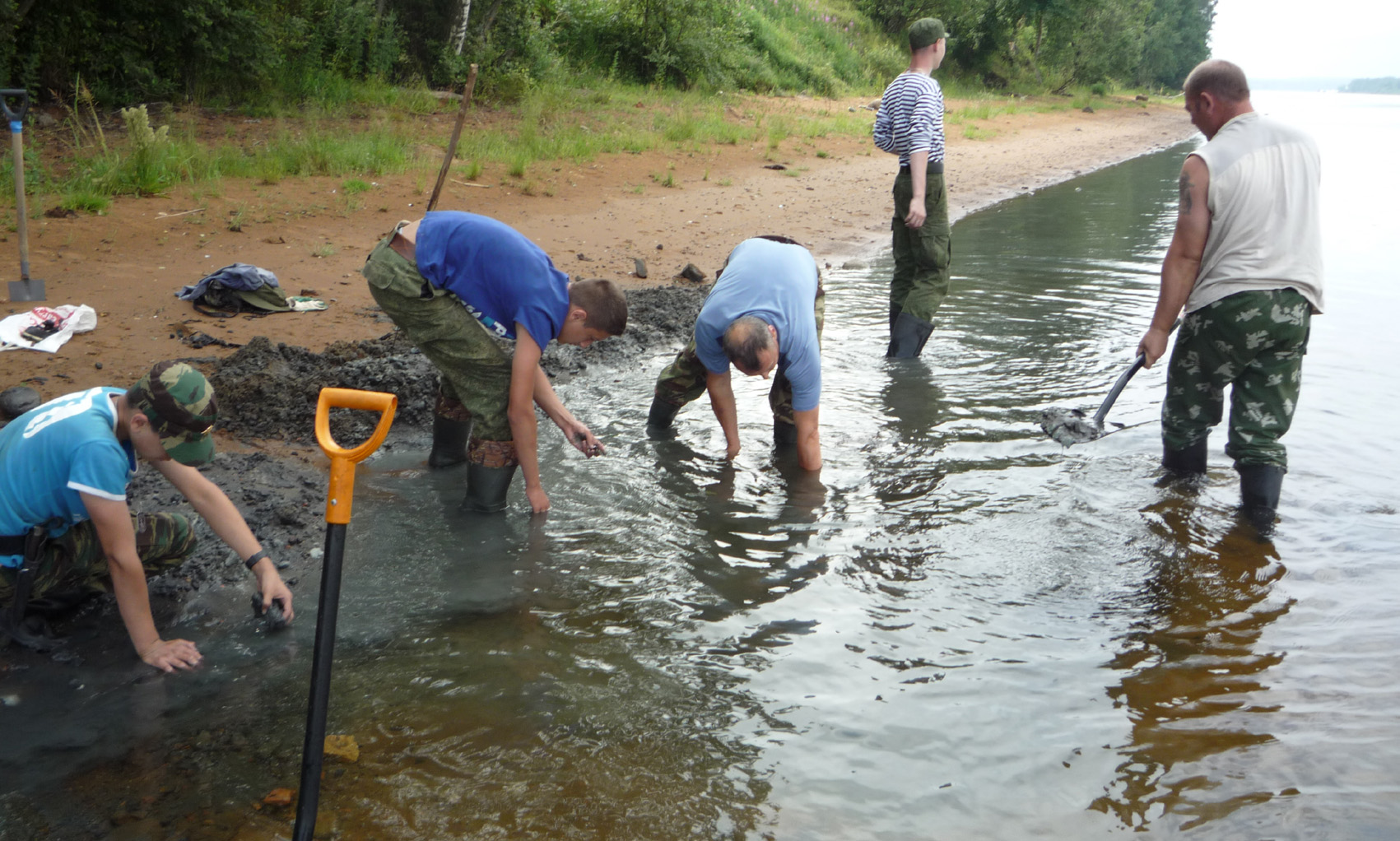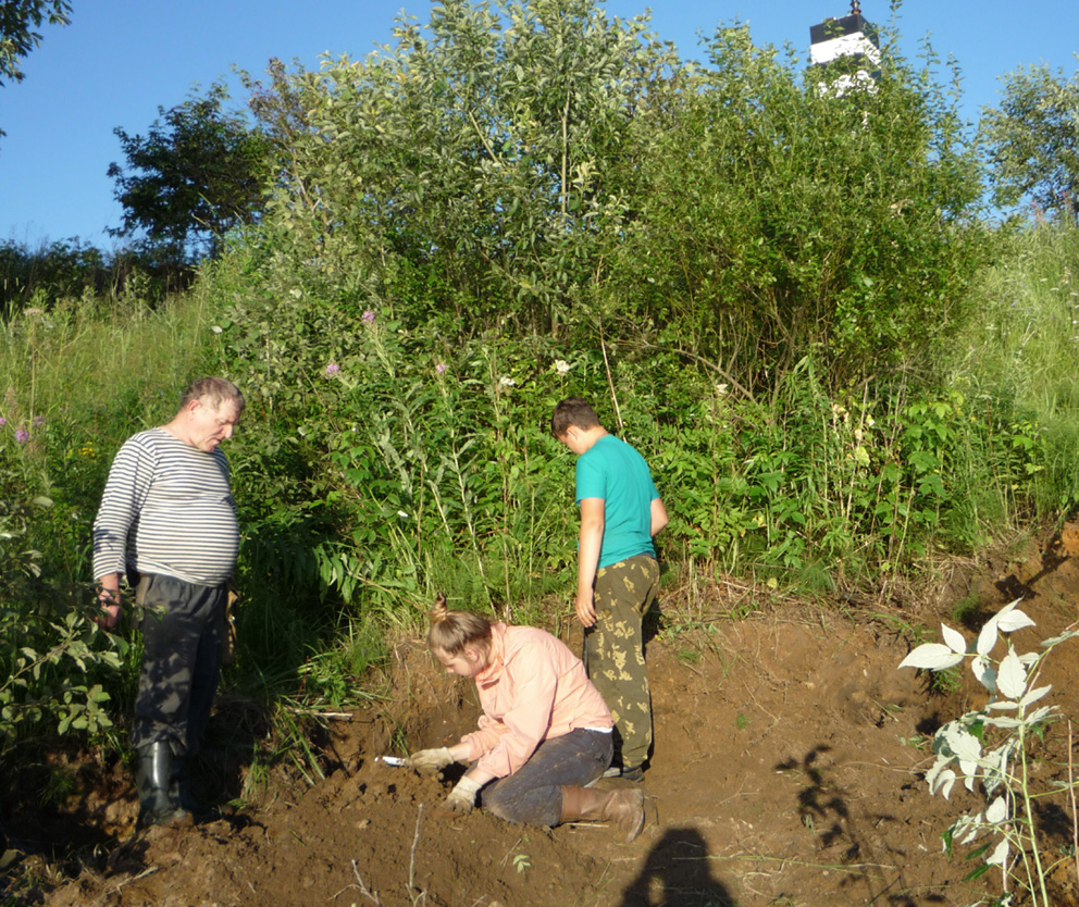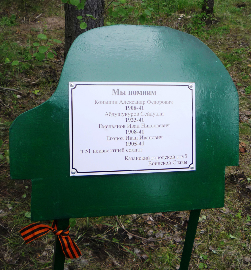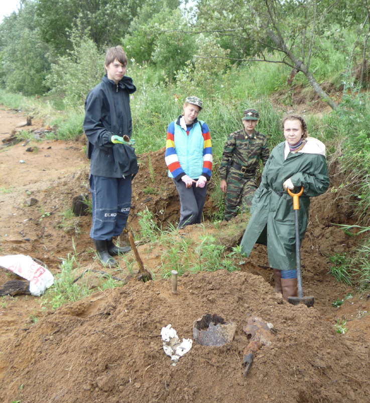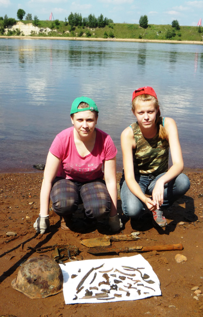 С 1 по 13 июля в ходе работы учебно-поискового лагеря на мемориале «Невский Пятачок» в Кировском районе Ленинградской области 53 члена сводного поискового отряда Ассоциации «Клуб Воинской Славы» собрали останки около десятка советских воинов и нашли 4 солдатских медальона-«смертника». Один из них удалось прочитать: "Петриченко Николай Ефимович, 1920 г. рождения, красноармеец, уроженец ст. Беслинеевская Мостовского района Краснодарского края. Отец Ефим Дмитриевич жил там же." По сайту «ОБД Мемориал» он считается пропавшим без вести в апреле 1943 года. Как сообщил председатель муниципального совета, в станице родных уже нет. Может быть, найдется кто-то из дальних родственников. Нашла медальон на берегу Невы, в основании песчаного мыса ученица гимназии № 96 г.Казани Евгения Тютчева. Это её первая подобная находка, хотя участвует в раскопках она с 2011 года. Хозяин второго медальона, останки которого буквально под невской водой нашел ученик гимназии № 139 Рафаил Халиуллин, не оставил никакой записки, а просто сделал из черного пенальчика мундштук. Потому имя его осталось неизвестным. Двое бойцов опознаны по надписям на котелках: Ярошенко Иван Прохорович, 1919 г. рожд., лейтенант 11 отдельной стрелковой бригады, уроженец с.Худолиевка Оболонянского района Полтавской области. По сайту «ОБД Мемориал» считался пропавшим 26 сентября 1941 г. в районе д.Московская Дубровка на берегу Невы. (Правда, под именем своего родного брата Михаила, который вернулся живым). О нём помнят внучатые племянники на Полтавщине, но на захоронение приехать не имеют то ли возможности, то ли желания. Останки украинца нашел Ильназ Сагиров из гимназии № 6. Ему же посчастливилось найти и солдата со вторым подписанным котелком. К сожалению, фамилия на нём написана не понятно: то ли Чуненко, то ли Луненко, то ли Яхненко. Четко читаются только инициалы - Т. В. Влада Долгушева из с.Верхний Услон нашла солдата с портмоне, в котором был знак Гвардия. Там же были и какие-то документы, но прочесть их можно только с помощью экспертов. Половина отряда работала за дорогой, в посадках, где проходила глубоко эшелонированная оборона сначала вражеская, а потом и наша. Буквально за транспарантом «Слава героям Невского пятачка» ученики гимназии № 6 Диана Демьянова и Виктор Кокорев нашли останки солдата с обломками медальона, звездочкой и ложкой, на которой нацарапано: «ВОI». То, что она тоже советская, можно установить по заводскому клейму «Красный выборжец». Максим Савиди из той же гимназии № 6 нашёл останки солдата с медальоном без крышки. В месте своих многолетних поисков, напротив легендарного куба на Невском пятачке татарстанцы открыли памятный знак с именами тех солдат, кого удалось опознать по медальонам за последние 5 лет. Надпись гласит: «Мы помним Коньшин Александр Федорович, 1908-1941, Абдушукуров Сайдуали, 1923-1941, Емельянов Иван Николаевич, 1908-1941, Егоров Иван Иванович, 1905-1941 и 51 неизвестный солдат. Казанский городской клуб Воинской Славы». Это была двадцатая экспедиция татарстанцев на Невский Пятачок. Все эти годы руководил ею Михаил Черепанов, руководитель рабочей группы Книги Памяти Татарстана, ныне заведующий Музеем-мемориалом Великой Отечественной войны НМ РТ, председатель Ассоциации "Клуб Воинской Славы". Совместно с ним руководили экспедицией директор Ассоциации, ветеран войны в Афган