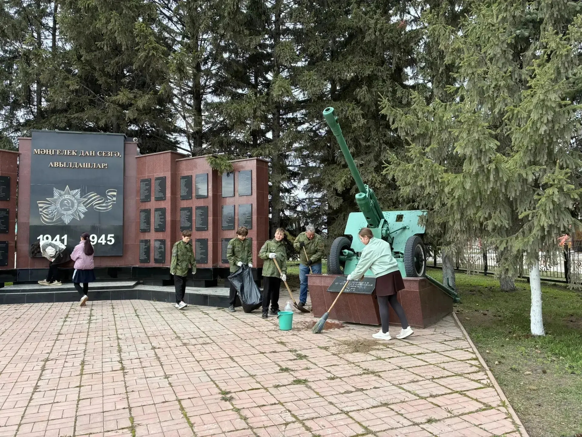 Субботник на Мемориальном комплексе в честь защитников Родины в Великую Отечественную войну — уроженцев села Бигаш