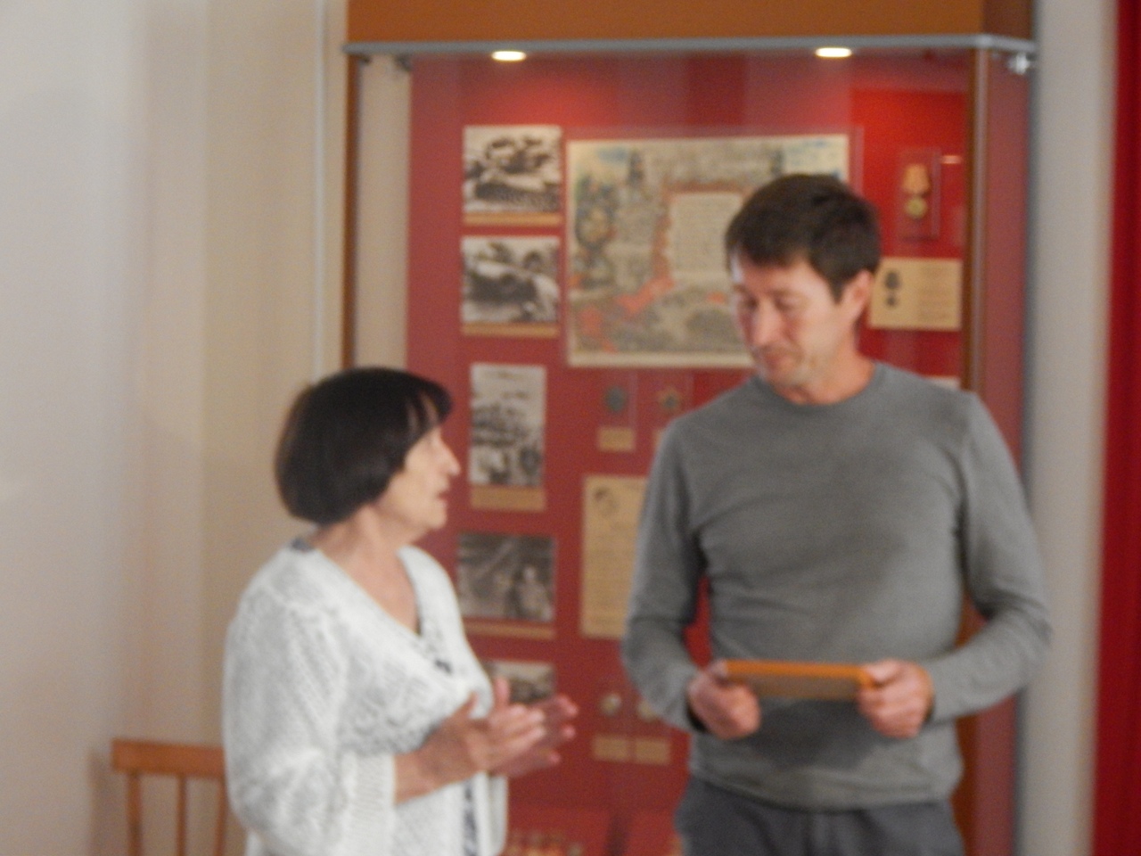 30 июля 2019 года в 14 ч. в музее Северо-Западного фронта состоится встреча с родственниками и передача вкладыша смертного медальона бойца Галеева Сафы Салимзяновича, уроженца Ютазинского района, Татарской АССР. Медальон был найден во время весенней Вахты Памяти на территории сенобазы д. Муравьёво, где во время Великой Отечественной войны находился лагерь военнопленных Дулаг 150. Поисковые работы вели АНО "ВПО "МЕДВЕДЬ" совместно с п/о "Волховский фронт". Передача идентификационного медальона фронтовика Сафы Галеева внуку Марату, приехавшему из Казани состоялась в музее Северо-Западного фронта. Медальон с нестандартной рукописной запиской нашел боец поискового отряда «Медведь» Дима Сураев на территории бывшего лагеря для военнопленных в д. Муравьево. К сожалению, информация в тексте вкладыша минимальная, не дающая возможности провести исследовательскую работу по установлению судьбы солдата. По предыдущим находкам поисковиков и установлению личности погибших, следует предположить, что Галеев Сафа из 254 стрелковой дивизии. К такому выводу подвел присутствующих руководитель поискового отряда И.Г. Тума. Он предложил вниманию гостей видеофильм о ходе работы на участке Дулага-150, прокомментировал историю поиска о двух военнопленных из Татарской республики. Ведущая встречи, старший научный сотрудник музея А.Ф.Иванова, рассказала о боях под Старой Руссой, о боевых действиях на фронте 254 стрелковой дивизии, о ее славном пути к победе с 1941 по 1945 год. В торжественной обстановке был вручен солдатский медальон внуку погибшего, и он выступил с ответным словом благодарности за установление места гибели близкого ему человека, сведений о котором ждут до сих пор его два пожилых сына. В ходе встречи звучали стихи ведущей А.Ф.Ивановой, старорусского поэта Ю.И.Матвеева. Патриотичным и высоко духовным было выступление гостьи из Санкт-Петербурга И.П. Ковалевой, дочери генерала П.В.Корчагина. А ее внук-дошкольник, названный в честь деда-генерала Павлом, искрометно прочитал стихи о десантниках. Под шквал аплодисментов мальчишка в военной форме занял свое место рядом с бабушкой. Мероприятие закончилось традиционно у колокола. Его голос объединил всех в минуту молчания.