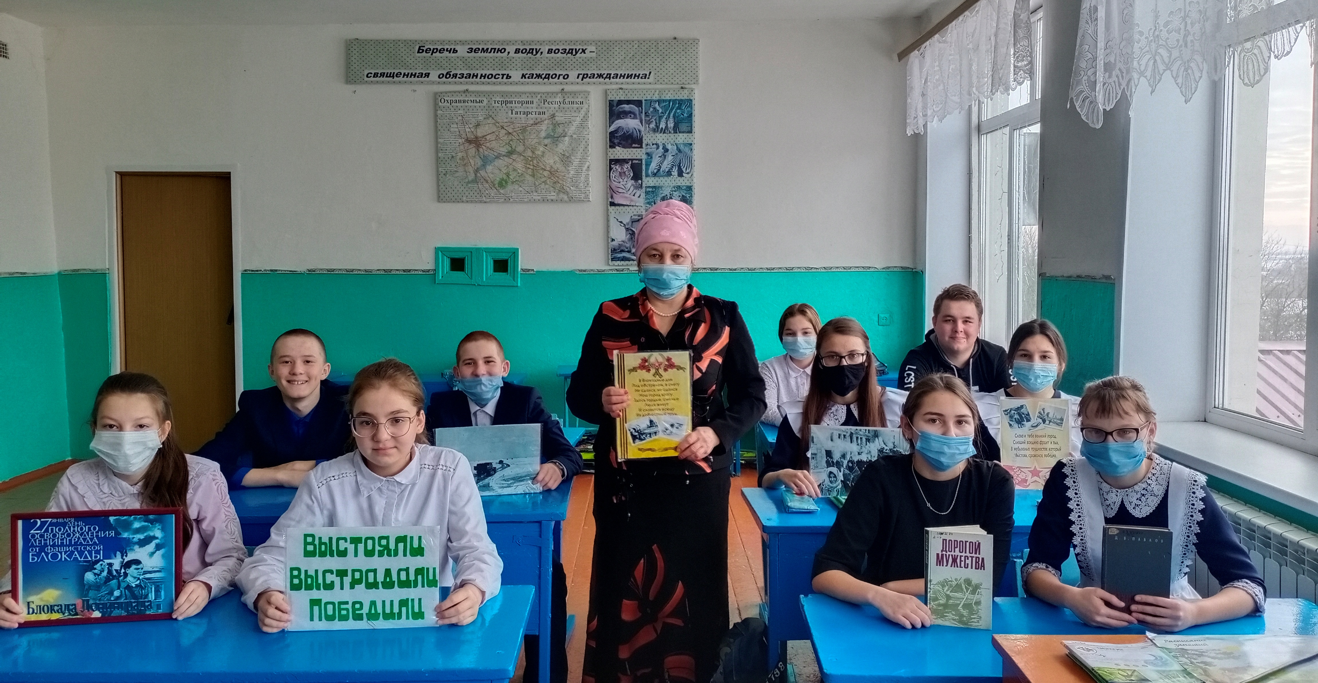 Библиотекарь Большеатрясской поселенческой библиотеки Хайруллина Зубарзят для учащихся старших классов Алабердинской СОШ провела час мужества «Ты выстоял, мой Ленинград!», посвященный Дню снятия блокады Ленинграда. Она рассказала ребятам о норме хлеба, хлебных карточках. В течение мероприятия звучали стихи о войне, о блокаде. Также ребята узнали о трагедии Холокоста, о преднамеренной попытке фашистами полного истребления целой нации.