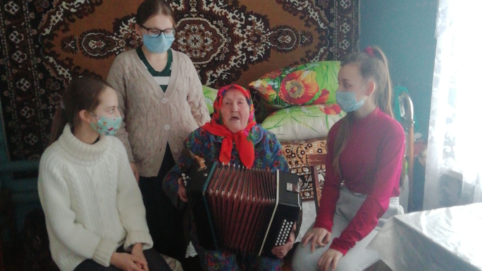 В рамках проекта "У войны не женсоке лицо" работники культуры Чувашско-Дрожжановскоес ученицами посетили труженицу тыла Сачкову Марию Степановну на дому. Она рассказала нам о жизни в годы войны в селе, сыграла на баяне и спела песни тех лет.
