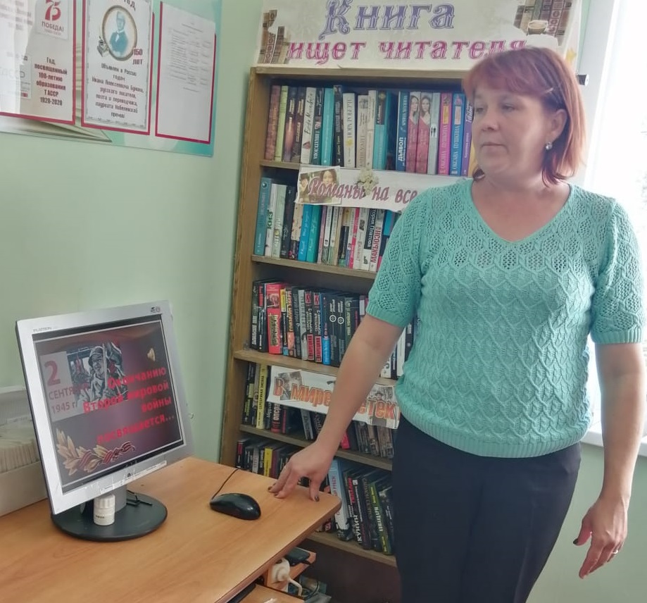 2 сентября - это второй День Победы в Великой Отечественной войне, победы на Востоке. У времени есть своя память - история. И поэтому мир никогда не забывает о трагедиях, потрясавших планету в разные эпохи, в том числе и о жестоких войнах, уносивших миллионы жизней. Библиотекарь напомнила читателям историю, что 1 сентября 1939 года началась Вторая мировая война, крупнейшая в истории человечества, развязанная фашистской Германией, фашистской Италией и милитаристской Японией. По масштабам, людским и материальным издержкам, не имеет себе равных. Библиотекарь продемонстрировала и прокомментированы слайды о Второй мировой войне и провела викторину.