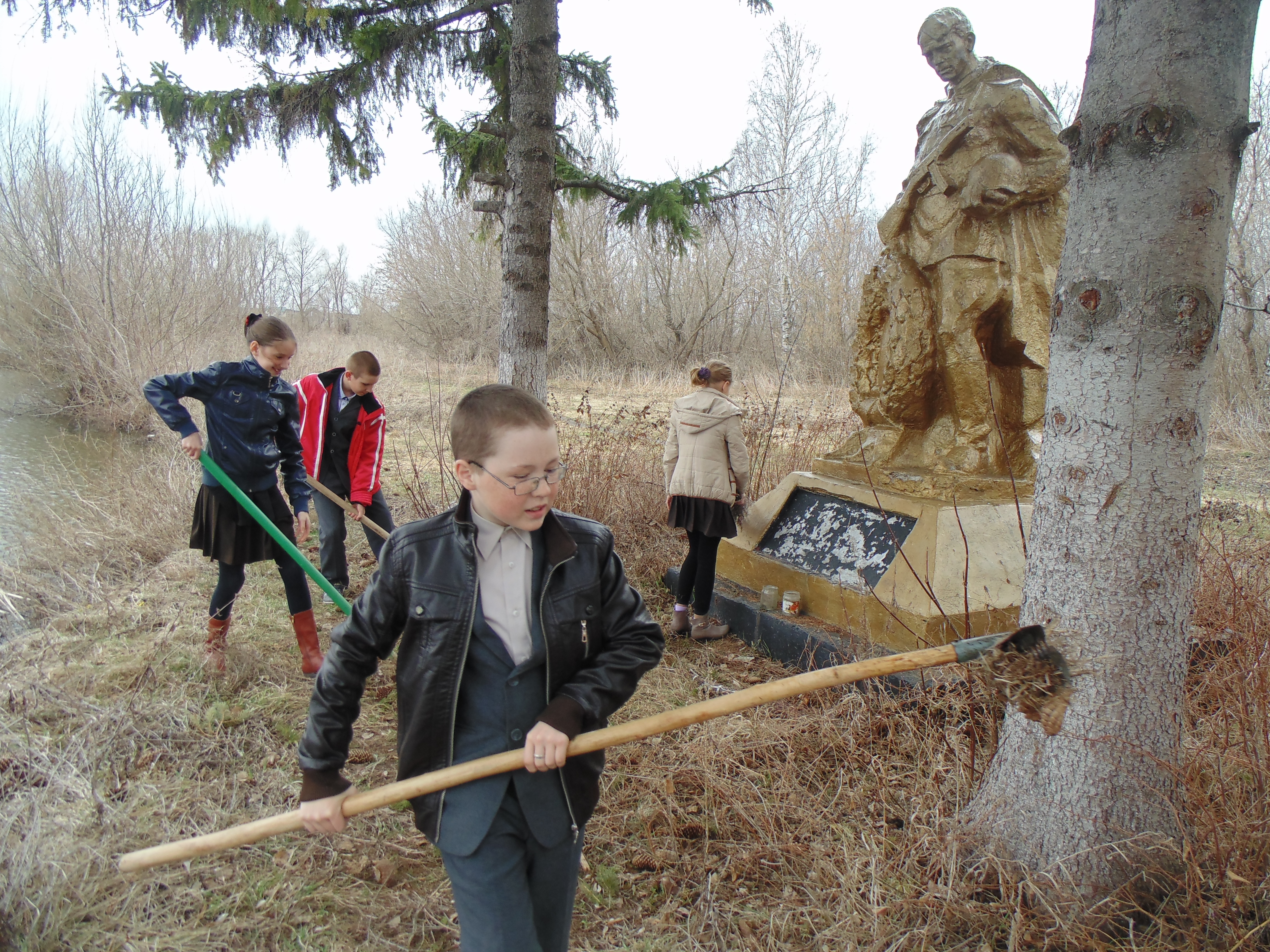 Учащиеся 9 класса МБОУ «Нармонская СОШ» очистили территорию около памятника Неизвестному Солдату в селе Нармонка Тетюшского района.