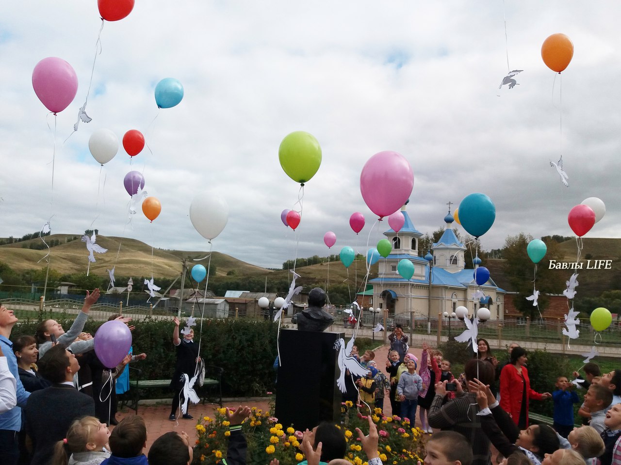 Учащиеся Крым-Сарайской школы стали участниками акции "Единый час духовности "Голубь мира". В 9.30 дети запустили в небо прикрепленных к воздушным шарам бумажных голубей, на которых были написаны имена погибших участников Великой Отечественной войны и тружеников тыла прабабушек и прадедушек.