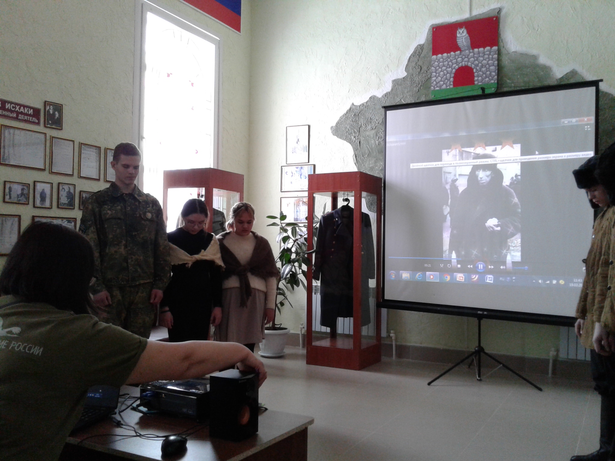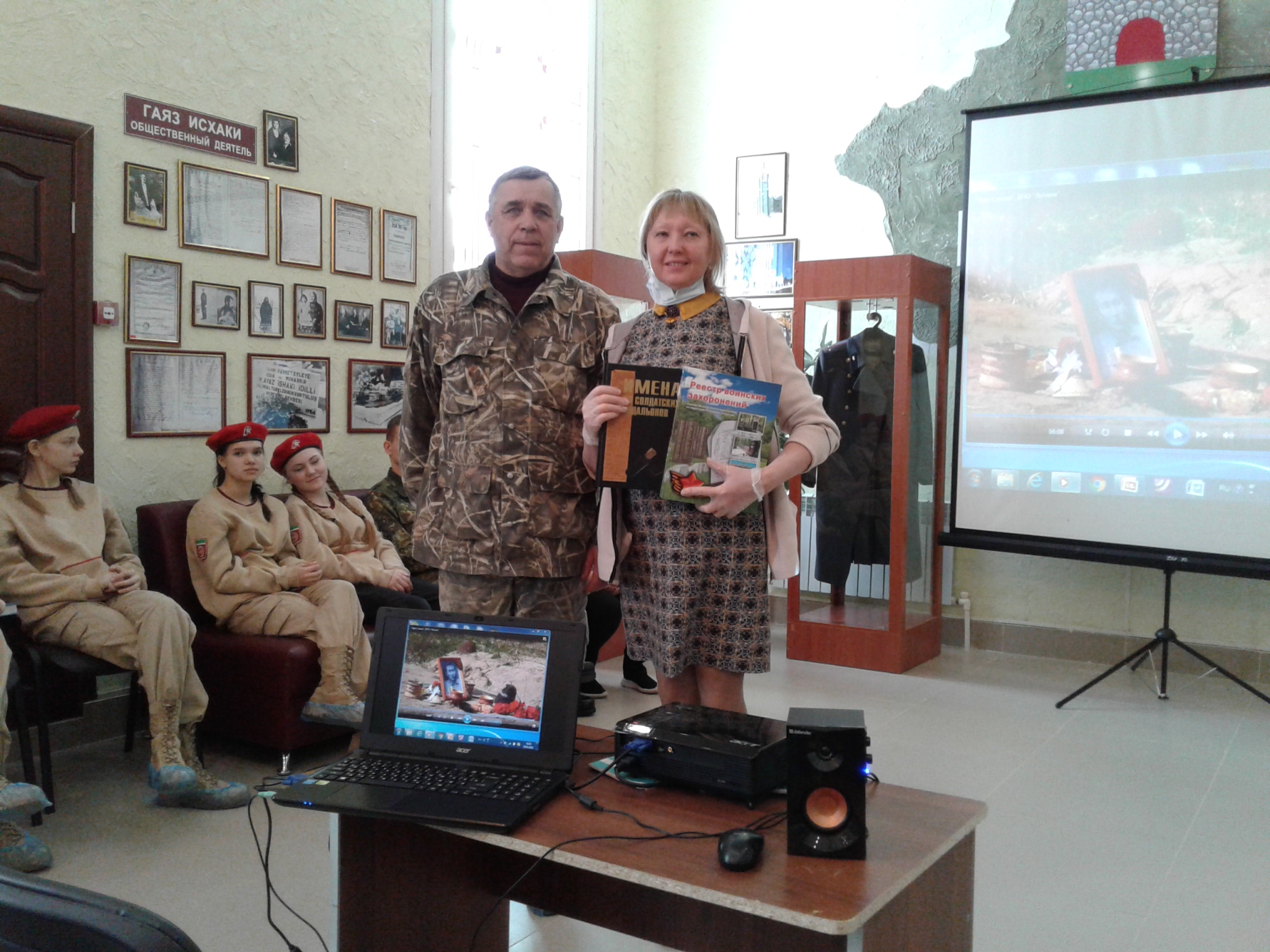Перед собравшимися в Парадном зале Мемориального центра выступили две агитбригады поисковиков Патриотического клуба «Отечество» города Казани. Их выступление было представлено литературно-музыкальным монтажем и показом презентацией.