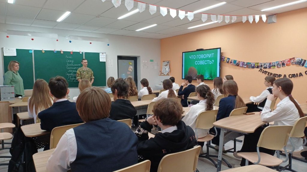22 декабря 2025 г. урок мужества "Что говорит совесть" провел участник специальной военной операции Ванюков Артём Константинович в Лицее √2.