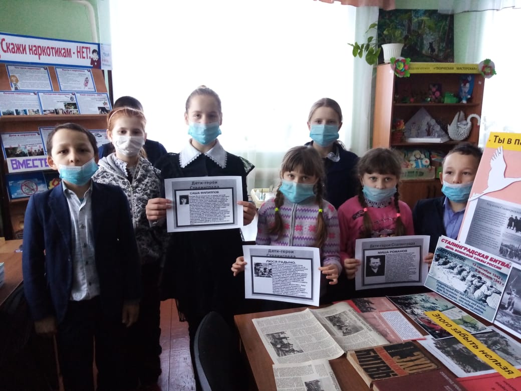 С целью формирования патриотических чувств у школьников в Екатерининской сельской библиотеке прошёл урок мужества "Дети - герои Сталинграда". Библиотекарь рассказала, как сталинградские дети и подростки в борьбе с врагом проявляли мужество и отвагу. Вниманию детей была предоставлена выставка книг и материала о Сталинградской битве.