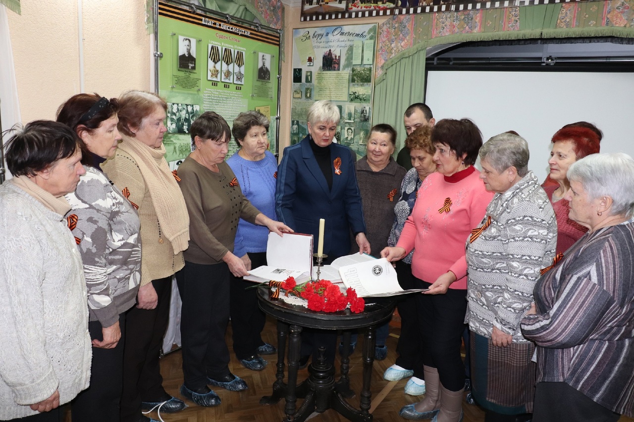 Гостям были вручены георгиевские ленты как символ воинской славы, отваги, мужества, символ Победы. Память всех погибших наших земляков на различных фронтах - Великой Отечественной, горячих точках Афганистана, Чечни, Сирии, специальной военной операции на Украине почтили минутой молчания.