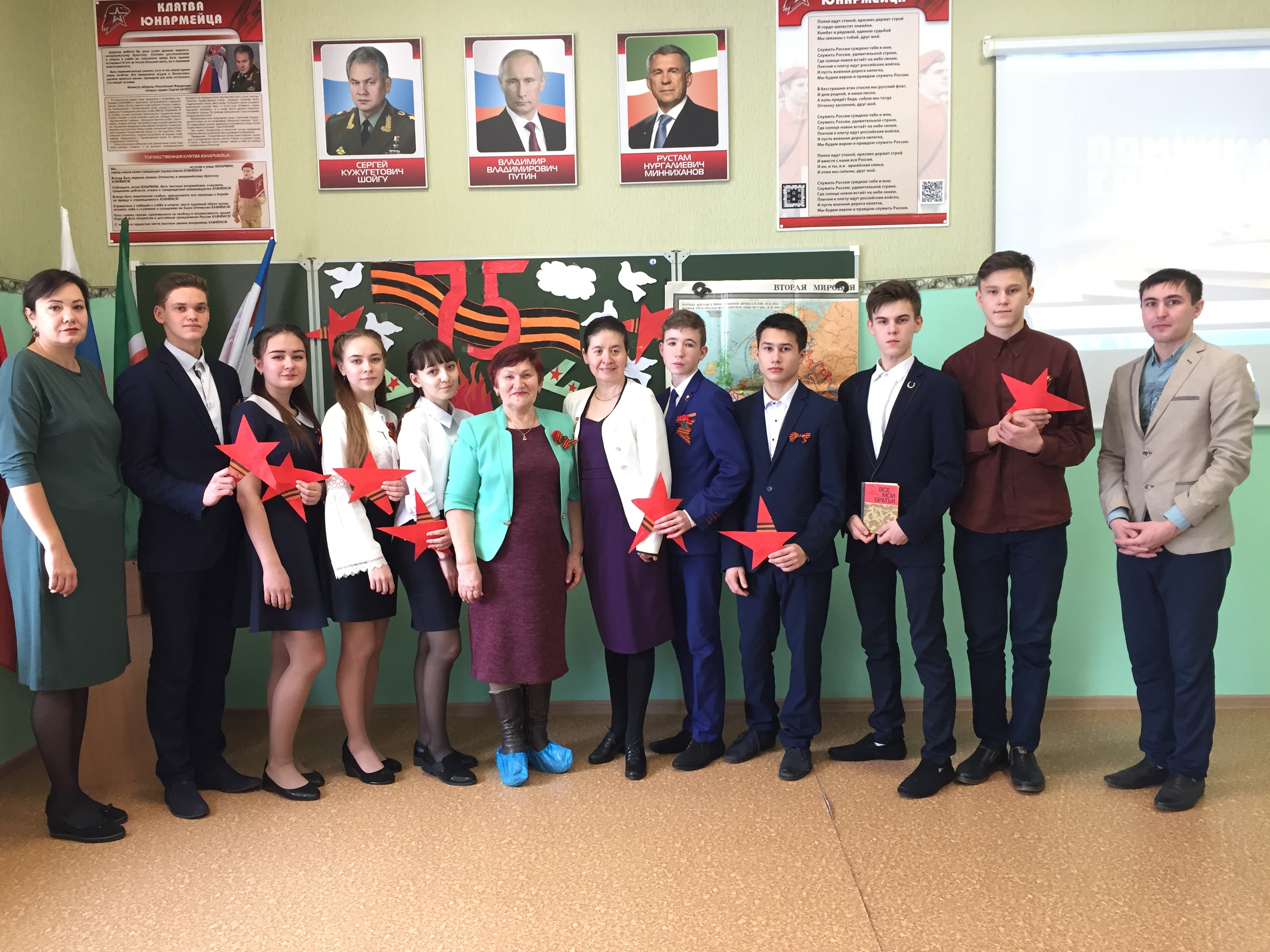 История знает немало примеров героической обороны крепостей, но легенды седой старины и трагические страницы не столь далекого прошлого бледнеют перед несравненной эпопеей человеческого мужества,стойкости и самоотверженного патриотизма, какой была 900 дневная оборона осаждённого Ленинграда. Сегодня 18 января в годовщину прорыва и в канун 75 летия снятия блокады Ленинграда в школе прошёл Урок мужества с участием Камалиевой Насимы Халяфовны- дочери легендарного директора АСШ#1, участника Великой Отечественной войны Хамзина Халяфа Хамзиновича. Она поделилась воспоминаниями об отце, показала семейные реликвии, переписку отца с однополчанами, фотографии. Познакомила с книгами Веры Фелисовой «Все мои братья», «Стояли насмерть», где имеются воспоминания о Хамзине Х. Х. С особой трепетностью рассказывала о блокадном Ленинграде, участником боев которых был ее отец. Также с интересом были прослушаны выступления учащихся 9А класса о неимоверных трудностях того времени, Дороге жизни, 7 симфонии Шостаковича, дневнике Тани Савичевой, героизме не только воюющих, а всех жителей города... Подобного рода встречи делают историю живой и близкой.