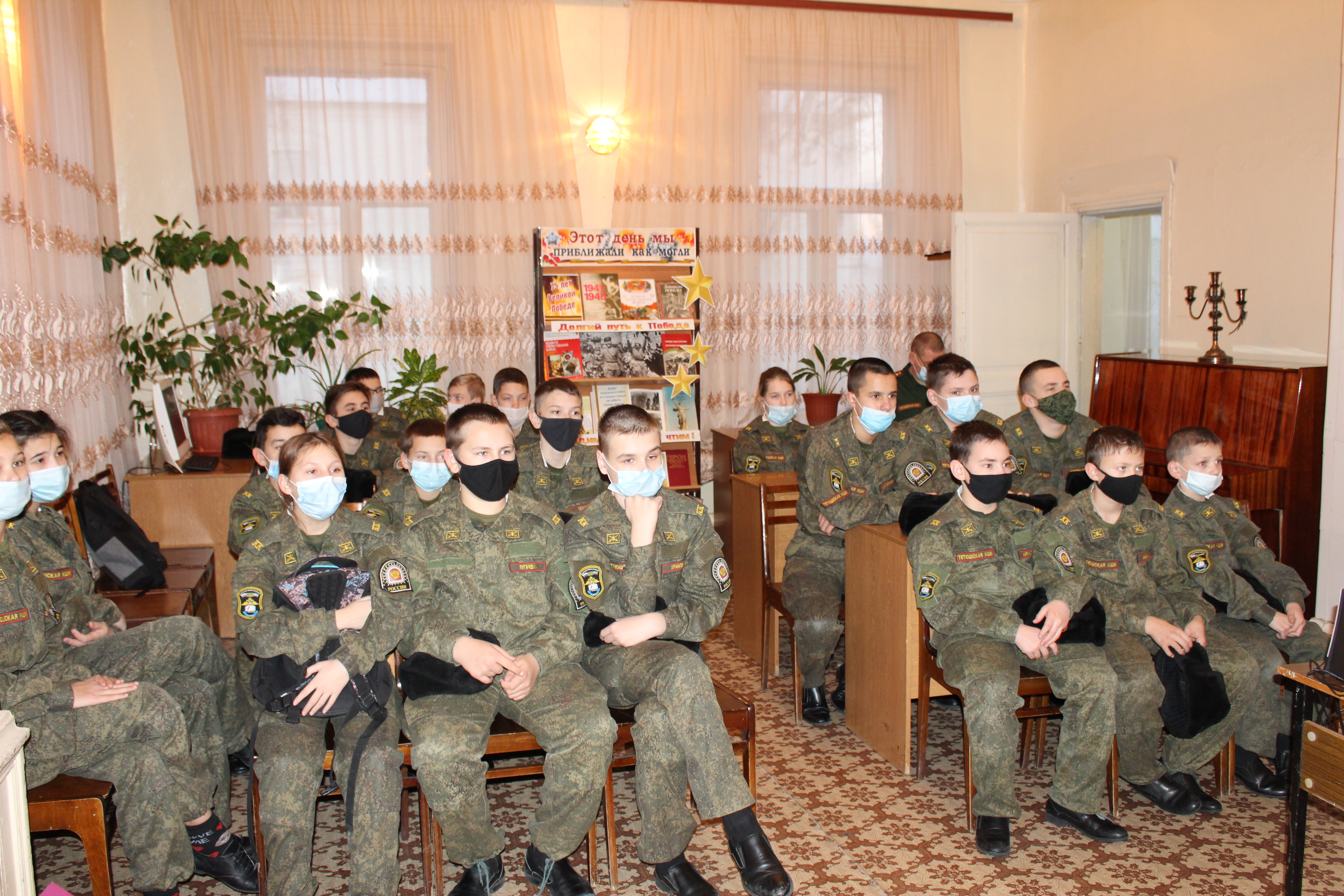 В Детской библиотеке города Тетюши был проведен урок мужества «Равнение на героев!», посвященный Дню Героев Отечества, на который были приглашены учащиеся 7 класса ГБОУ «Тетюшская кадетская школа-интернат имени В.А. Хапаева» (воспитатель С.Г. Костин).