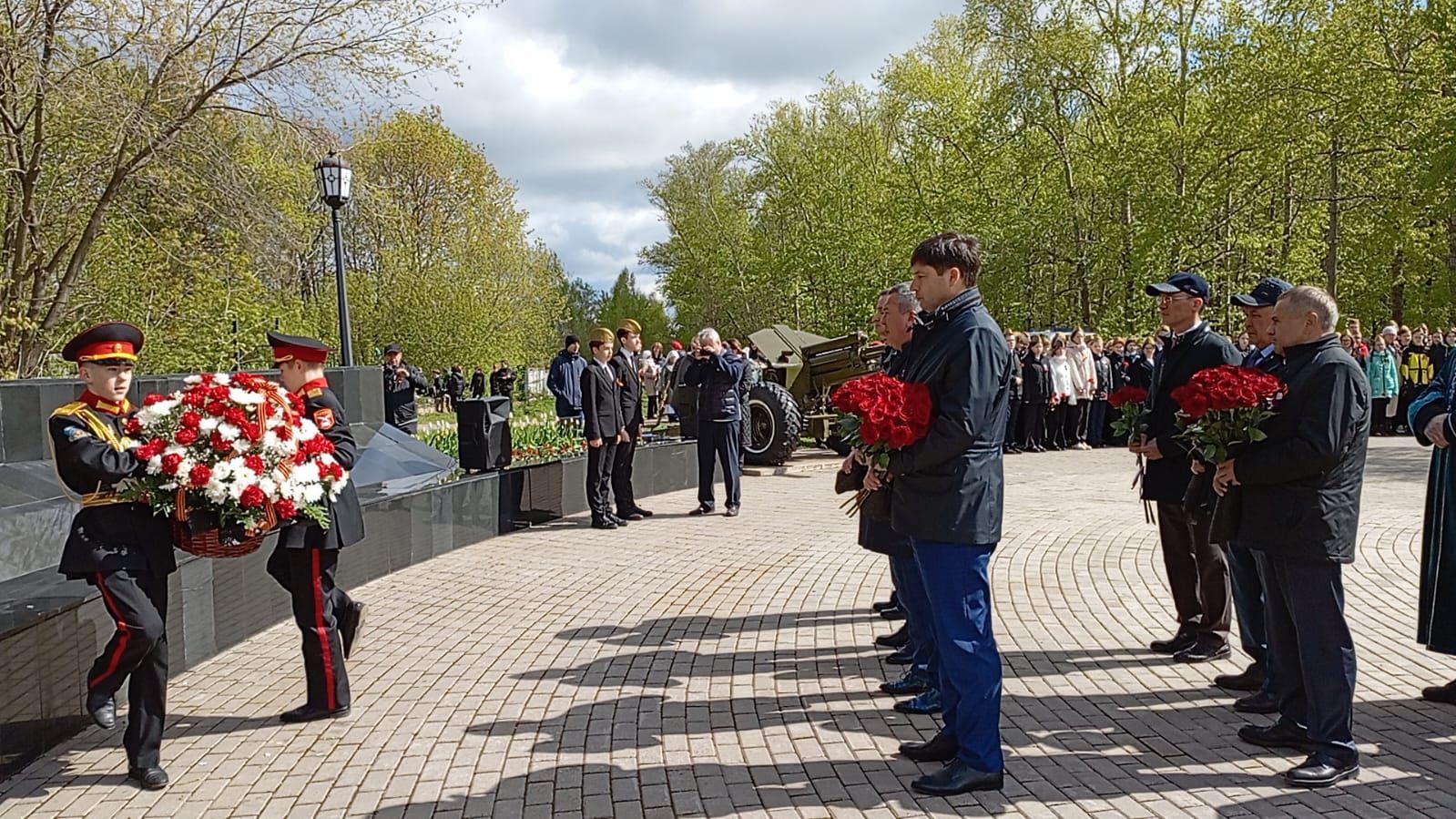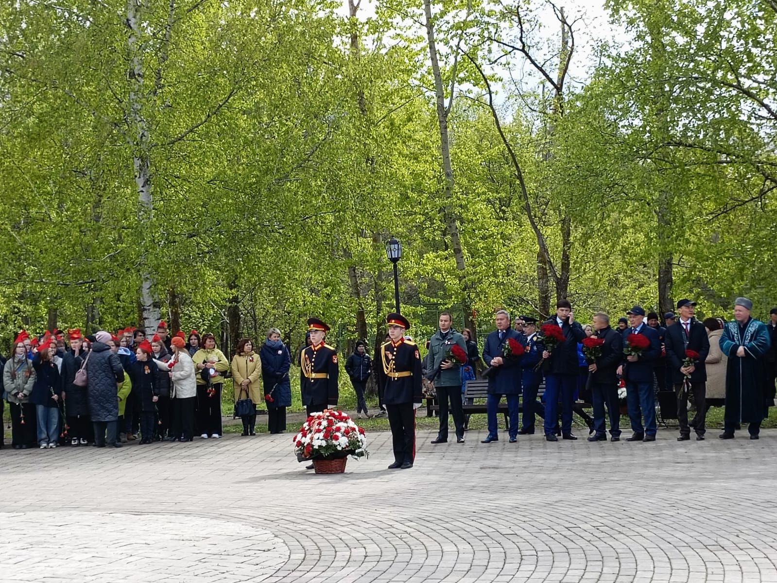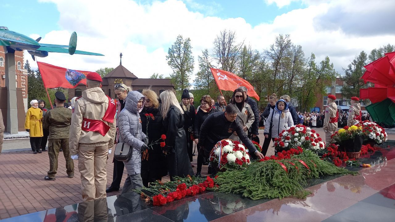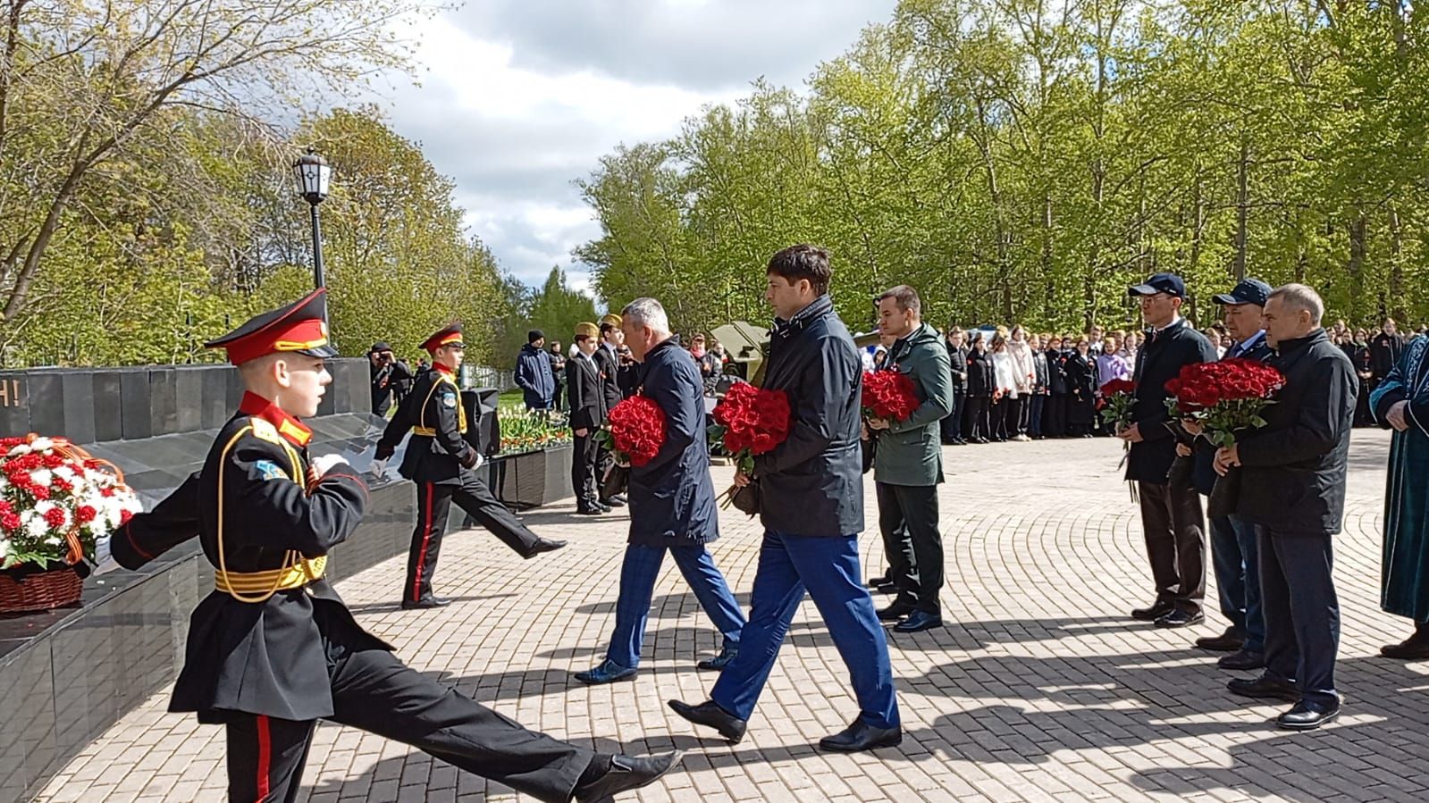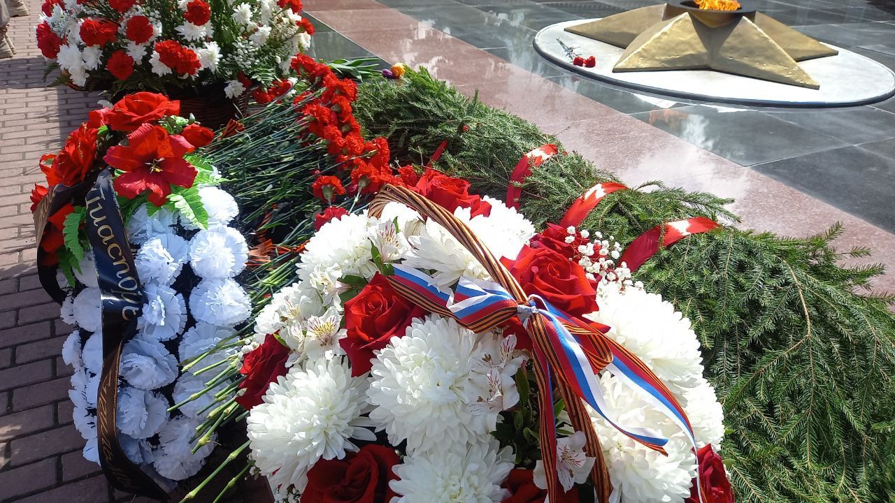 Церемония возложения цветов открылась в парке культуры и отдыха на улице Красноармейской. Участники мероприятия возложили цветы к мемориалу памяти.