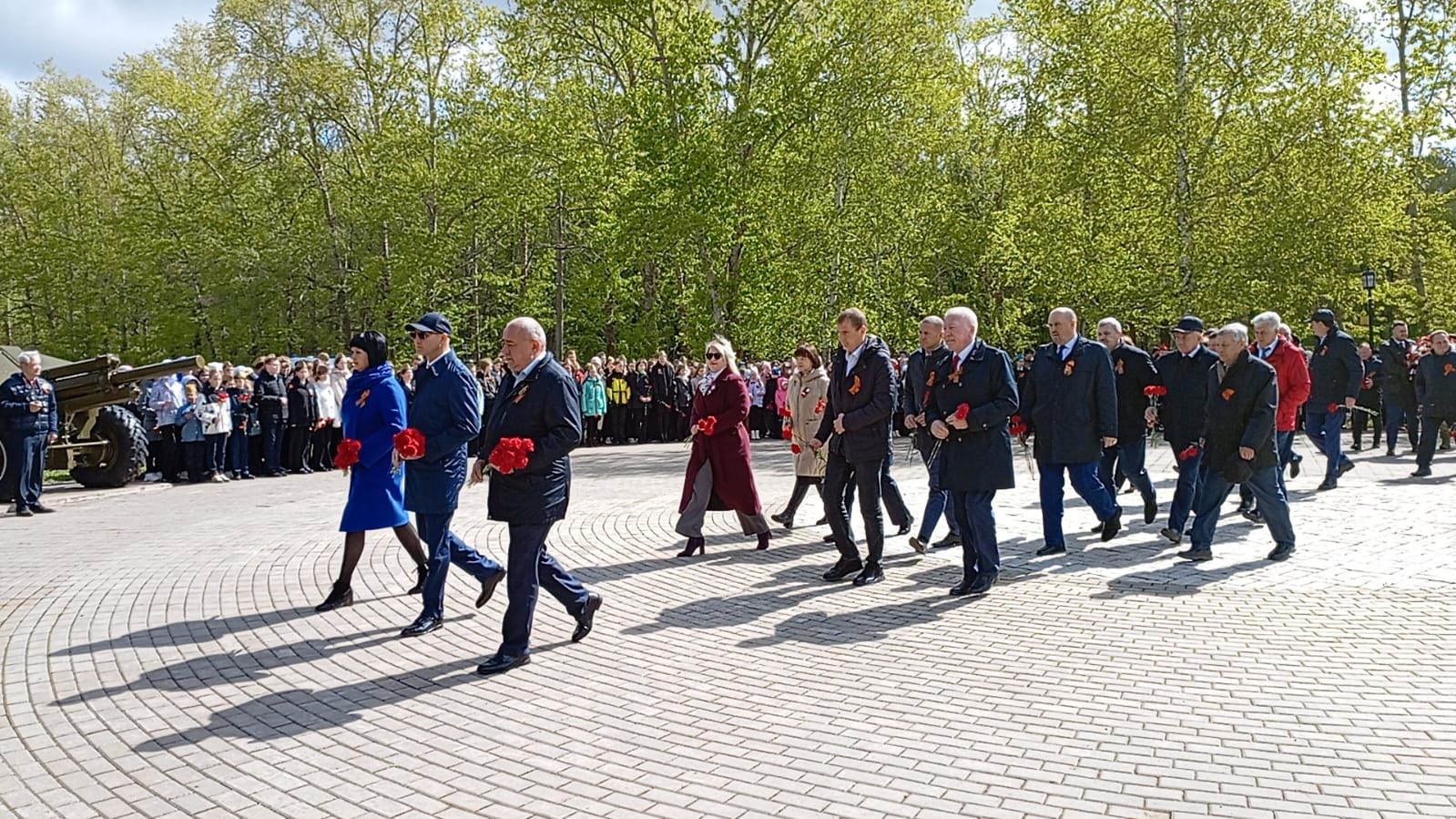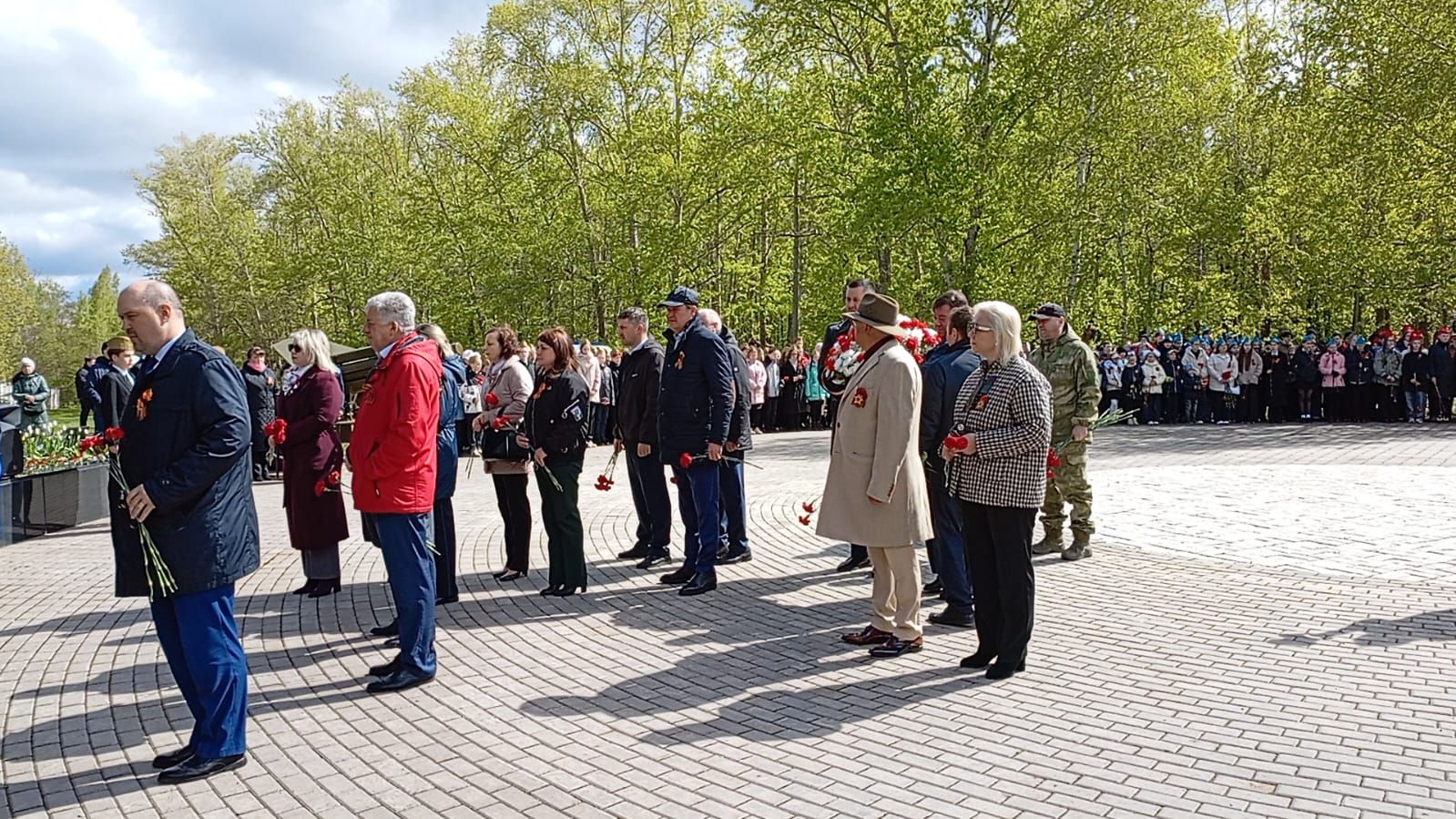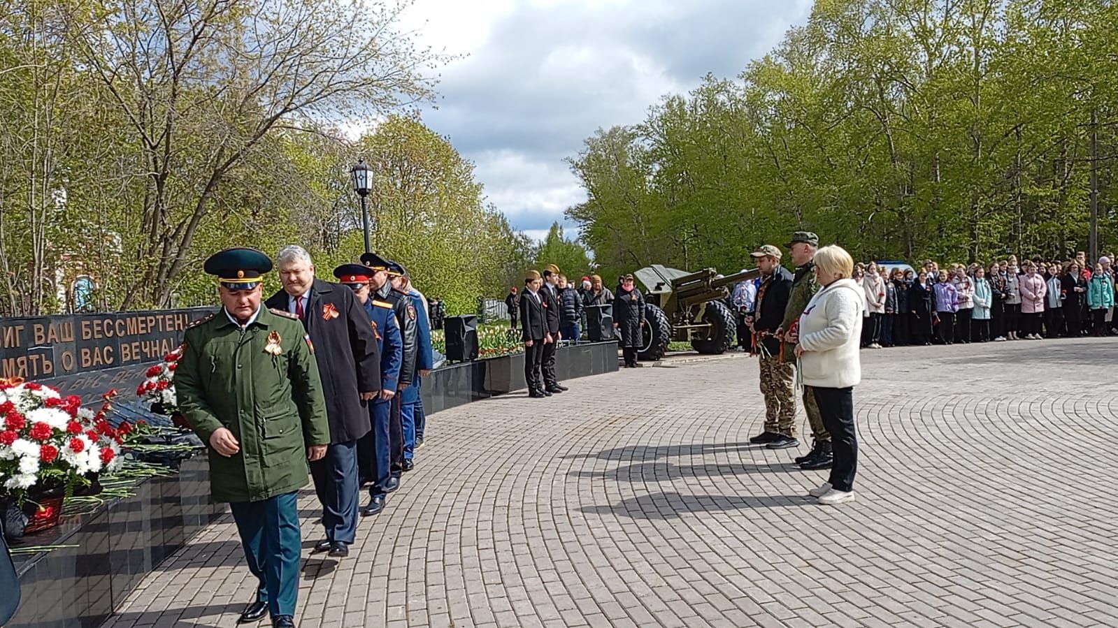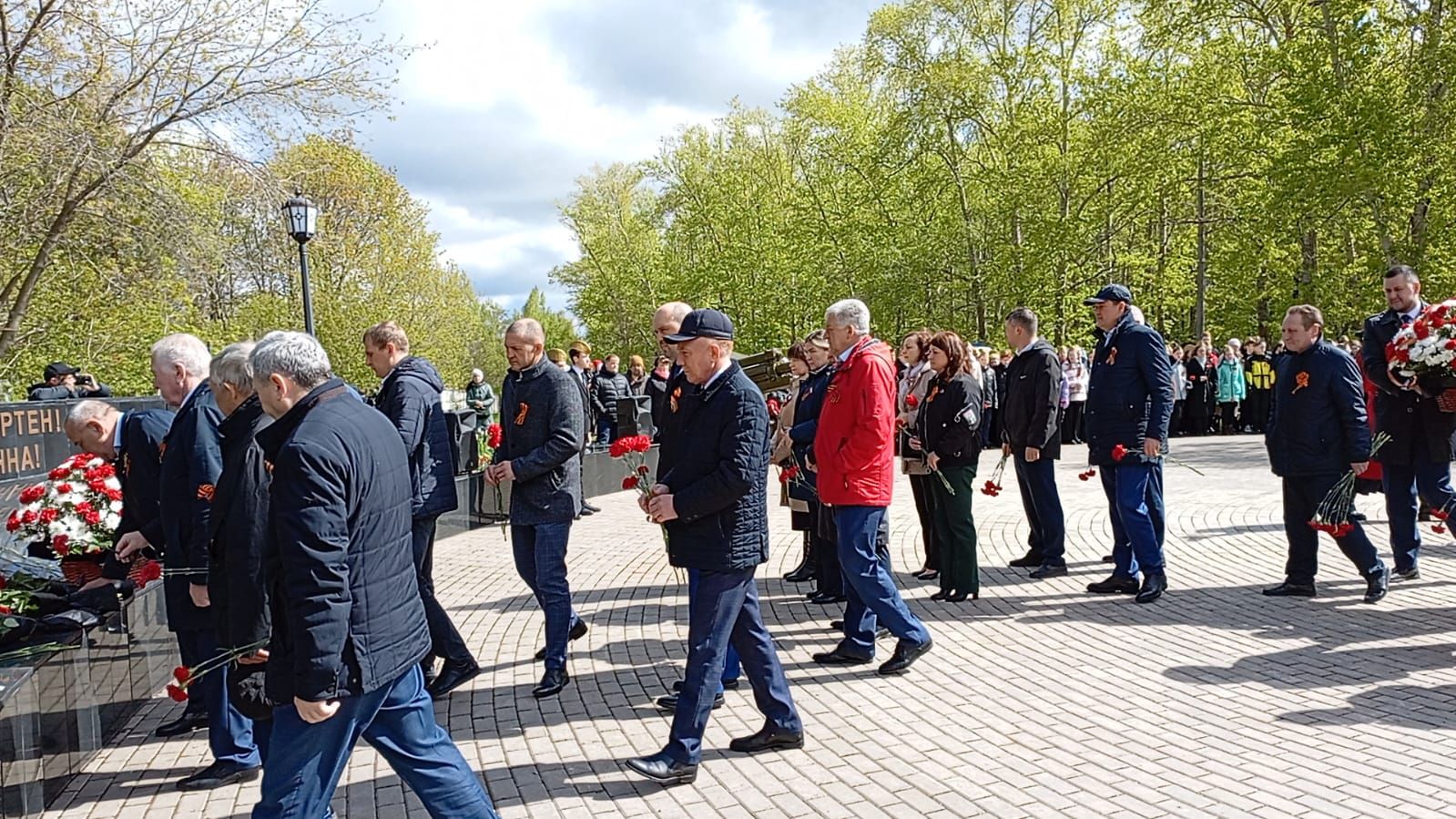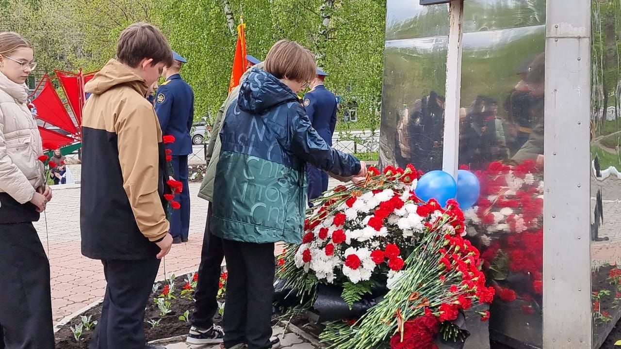 Церемония возложения цветов открылась в парке культуры и отдыха на улице Красноармейской. Участники мероприятия возложили цветы к мемориалу памяти.