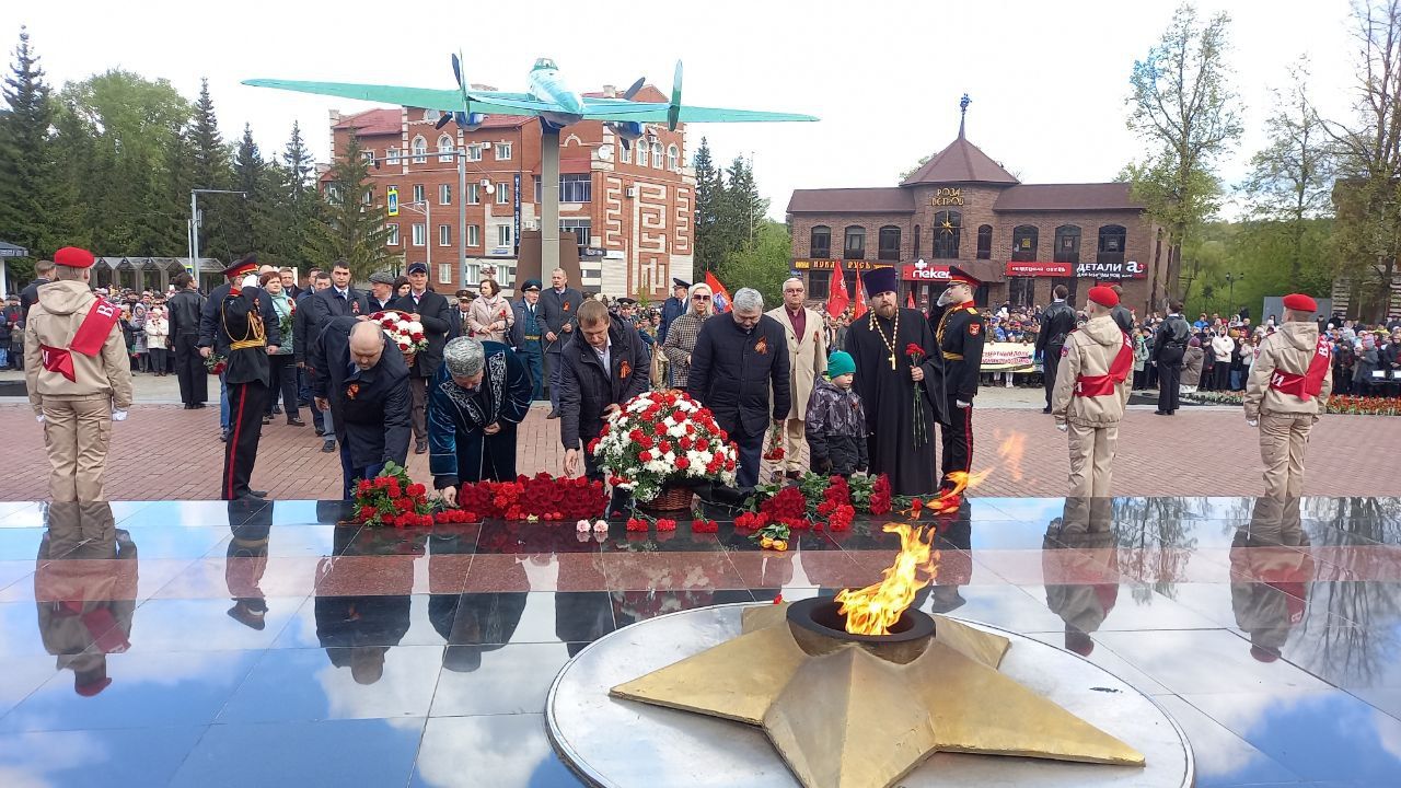 Бугульминцы и гости города возложили цветы к мемориалам в честь Дня Победы.