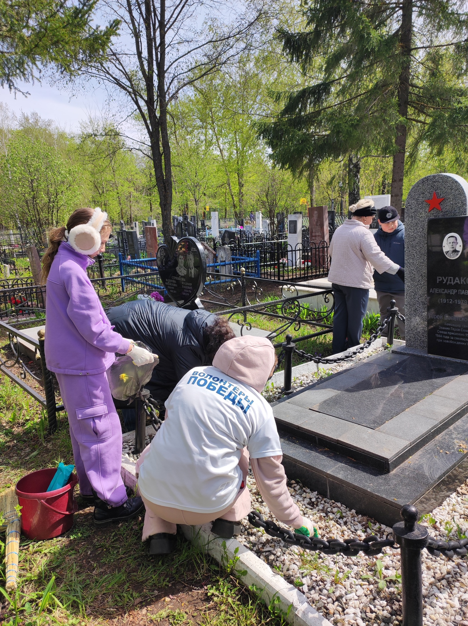 2 мая 2025 года #волонтерыПобедыБугульмы благоустроили памятные места, воинские захоронения Героев Советского Союза и бойцов, умерших от ран в эвакогоспитале № 2784, на старом кладбище по улице Красноармейская.