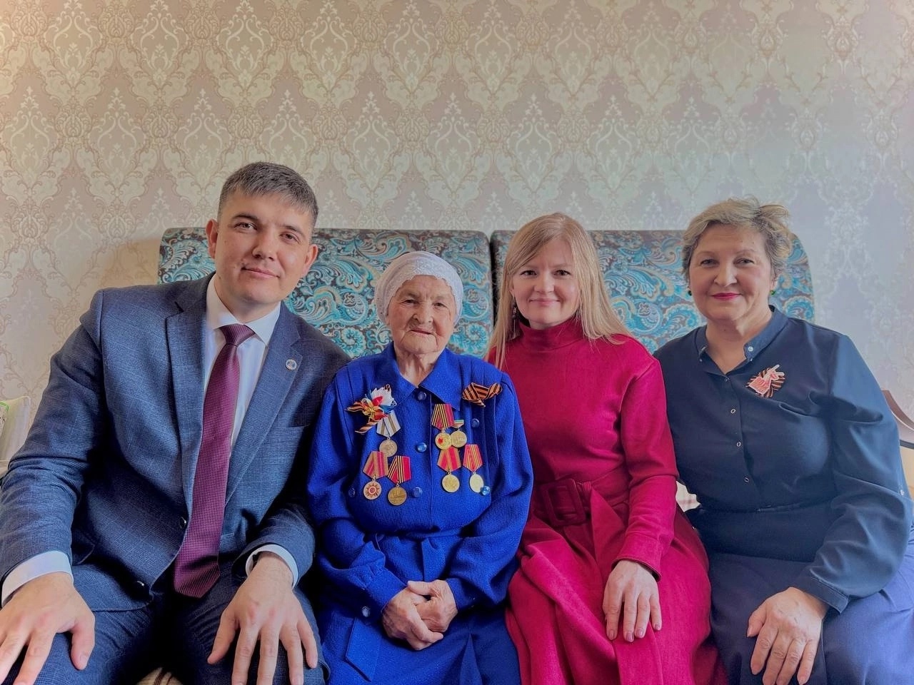 Юбилейные медали «80 лет Победы в Великой Отечественной войне 1941-1945 гг.» и подарки вручены — Александре Васильевне Бурдаковой, Рафиде Гумаровне Гумаровой, Самие Хамитовне Гильмутдиновой, Масхуде Маснавеевне Аслямовой, Зое Маркеловне Петровой, Амине Сагитовне Бадретдиновой, Асие Касимовне Гильмутдиновой и Вагизу Салаховичу Хафизову.