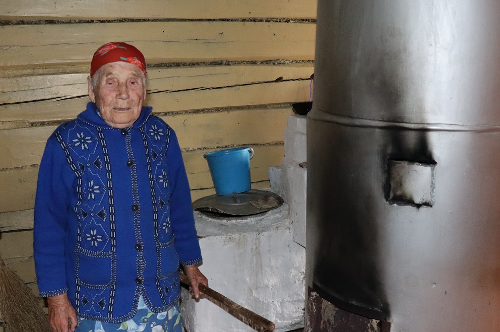 Долгожительница осталась преданной печке, которая была буквально у всех. Топить её дровами и наслаждается теплом.