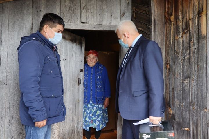 Поздравить с юбилеем долгожительницу пришли заместитль Главы района Алексей Ярухин и глава Большеаксинского СП Алексей Храмов. Гости вручили юбилярше поздравление от имени Президента РФ и подарок от имени Главы района.