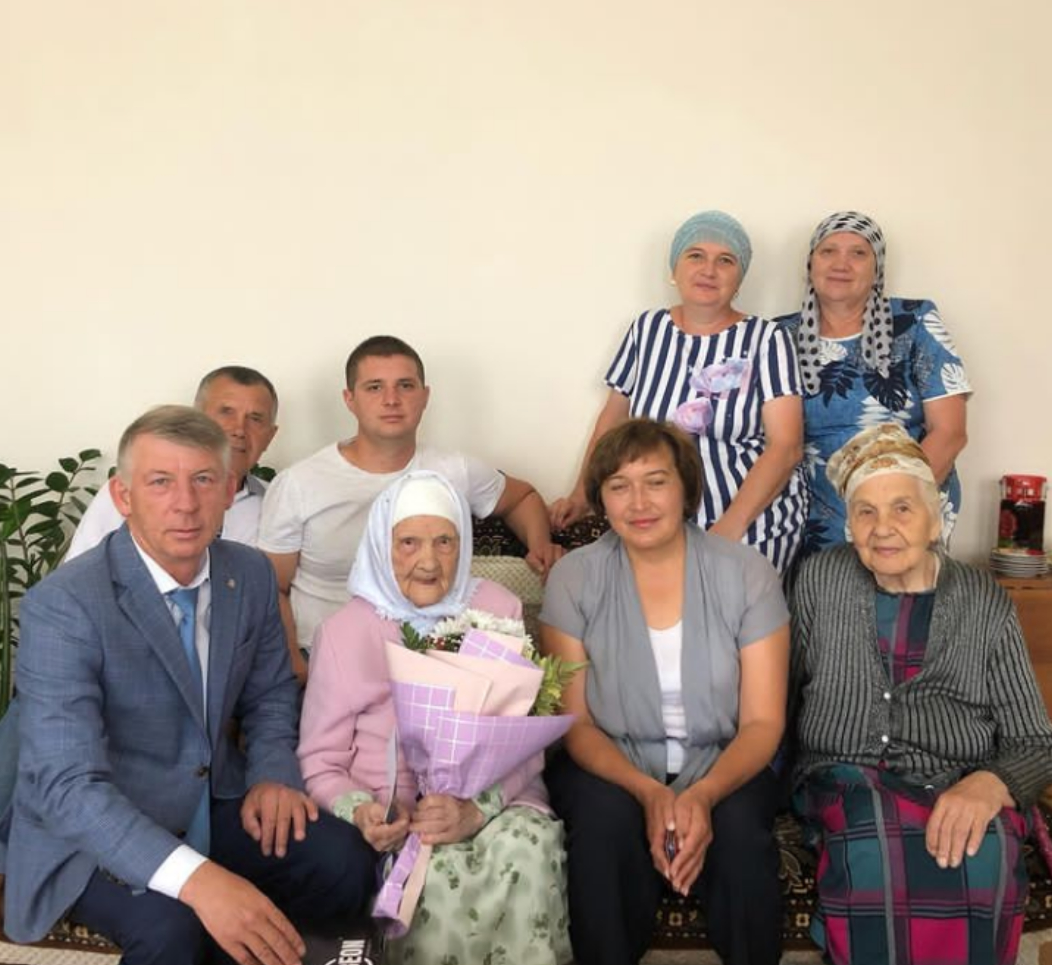 С юбилейной датой Талигу Камалову поздравили заместитель руководителя Исполкома Айрат Залялов и глава Старошаймурзинского сельского поселения Илгамия Мухитова. Они пожелали юбилярше долгих лет жизни и здоровья, вручили подарок, цветы и Поздравительную открытку Президента России.