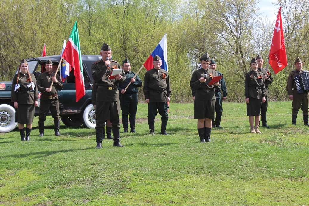 Фронтовая творческая агитбригада под руководством заместителя руководителя Исполкома Айрата Залялова выехала из самого района на специальных машинах, создавая атмосферу тех счастливых дней в мае 1945 года, которую ждала вся страна.