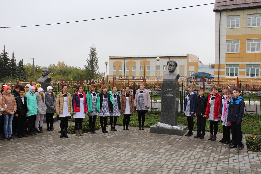 В центральном парке на площади Аллея Героев состоялось торжественное мероприятие: митинг, посвящённый дню рождения легендарного земляка, Героя Советского Союза Юхвитова Пётра Сергеевича.
