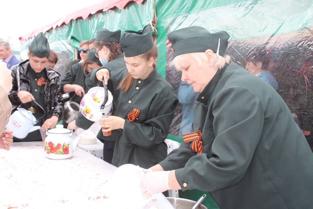 После Парада участники торжественного мероприятия в парке смогли отведать солдатскую кашу, посмотреть работу учащихся художественного отделения детской школы искусств, ознакомиться с экспонатами военных лет краеведческого музея, военными атрибутами воинов-афганцев под руководством Виктора Петухова, показать мастерство по разборке и сборке автомата, а также послушать фронтовые песни.