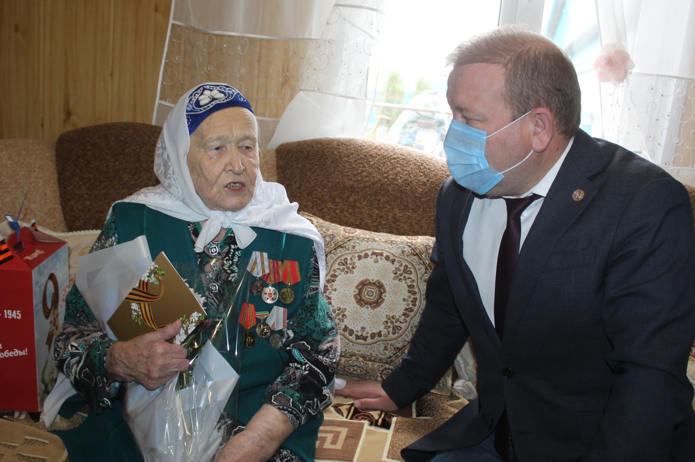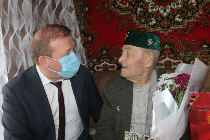 Сегодня Глава района Марат Гафаров лично посетил на дому ветеранов Великой Отечественной войны Анвер абый Фахрутдинова из села Старое Шаймурзино, Валентину Калачеву из села Убеи, а также вдов ветеранов в селе Старое Дрожжаное.