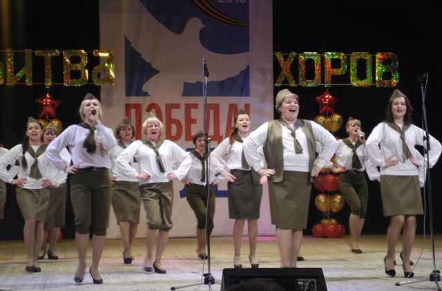 Яркие, выразительные, трогательные выступления, посвященные 70-летию Победы представили 19 коллективов дошкольных учреждений. Красочные костюмы передавали атмосферу войны и мира. В финале мероприятия к выступающим присоединился хор ветеранов "Красная гвоздика".