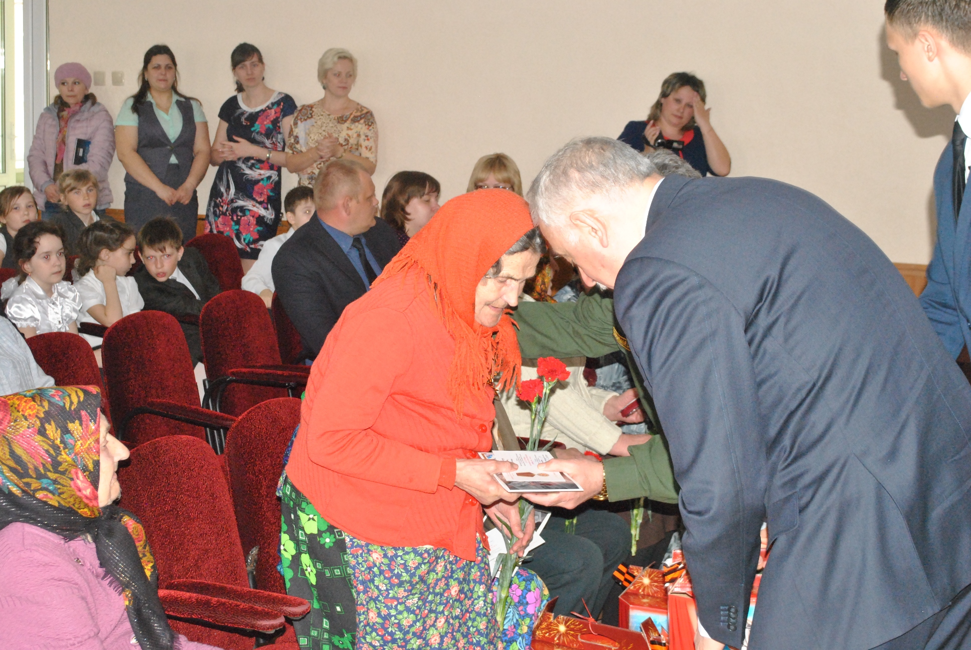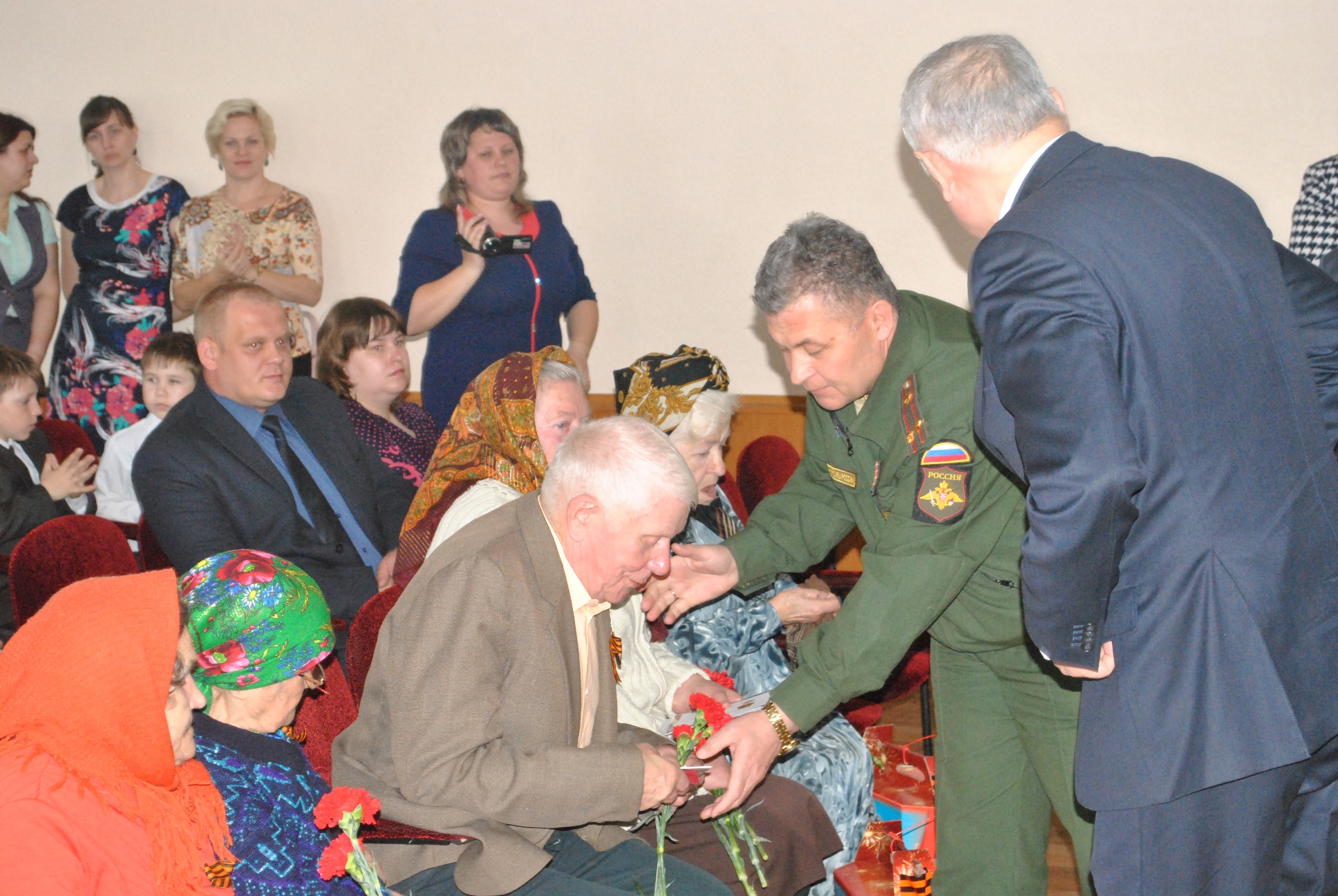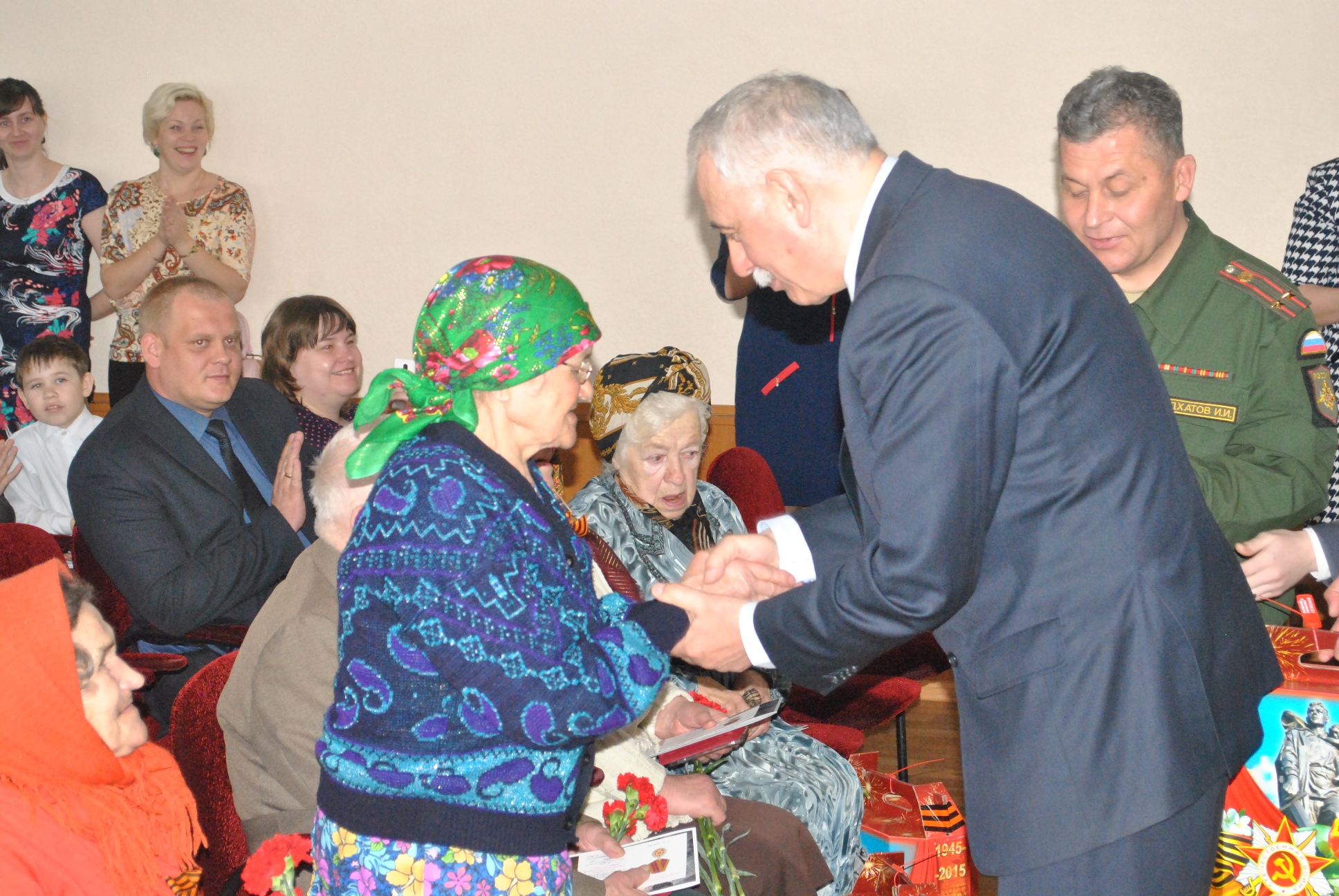 Вручение производили Глава Спасcкого муниципального района и муниципального образования г.Болгар Нугаев Камиль Асгатович и начальник отдела (военного комиссариата Республики Татарстан по Спасскому району) Мидхатов Ильхам Ильдусович. Камиль Асгатович поздравил ветеранов от имени Президента Российской Федерации Путина В.В. и Президента Республики Татарстан Миннеханова Р.Н. пожелав крепкого здоровья и долгих лет жизни.