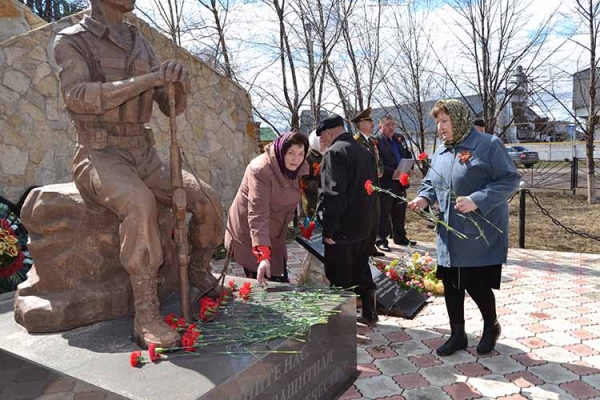 Затем все почтили память погибших солдат-земляков минутой молчания. Возложили живые цветы к памятнику «Помните нас, мы защитили Отечества».