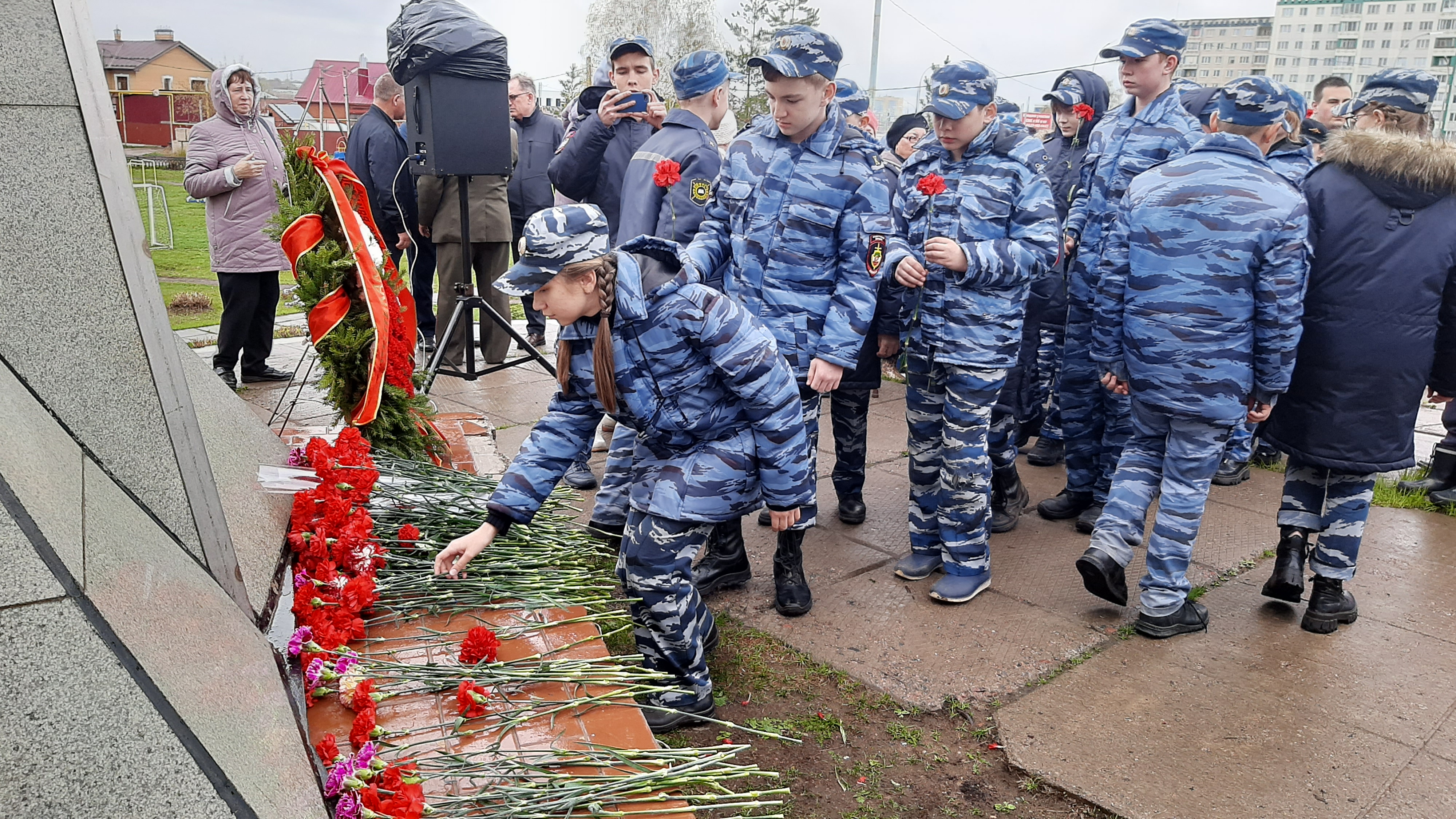 Отдать дань уважения ветеранам пришли представители военкомата, КБК им. С.П. Титова, Совета ветеранов Комсомольского района, преподаватели и студенты Камского строительного колледжа им.Е.Н.Батенчука и Набережночелнинского медицинского колледжа, воспитанники детского сада №47 «Айгуль», учащиеся гимназии №2, СОШ № 4,6,7,11,21,44,56, кадеты кадетской школы полиции «Калкан».