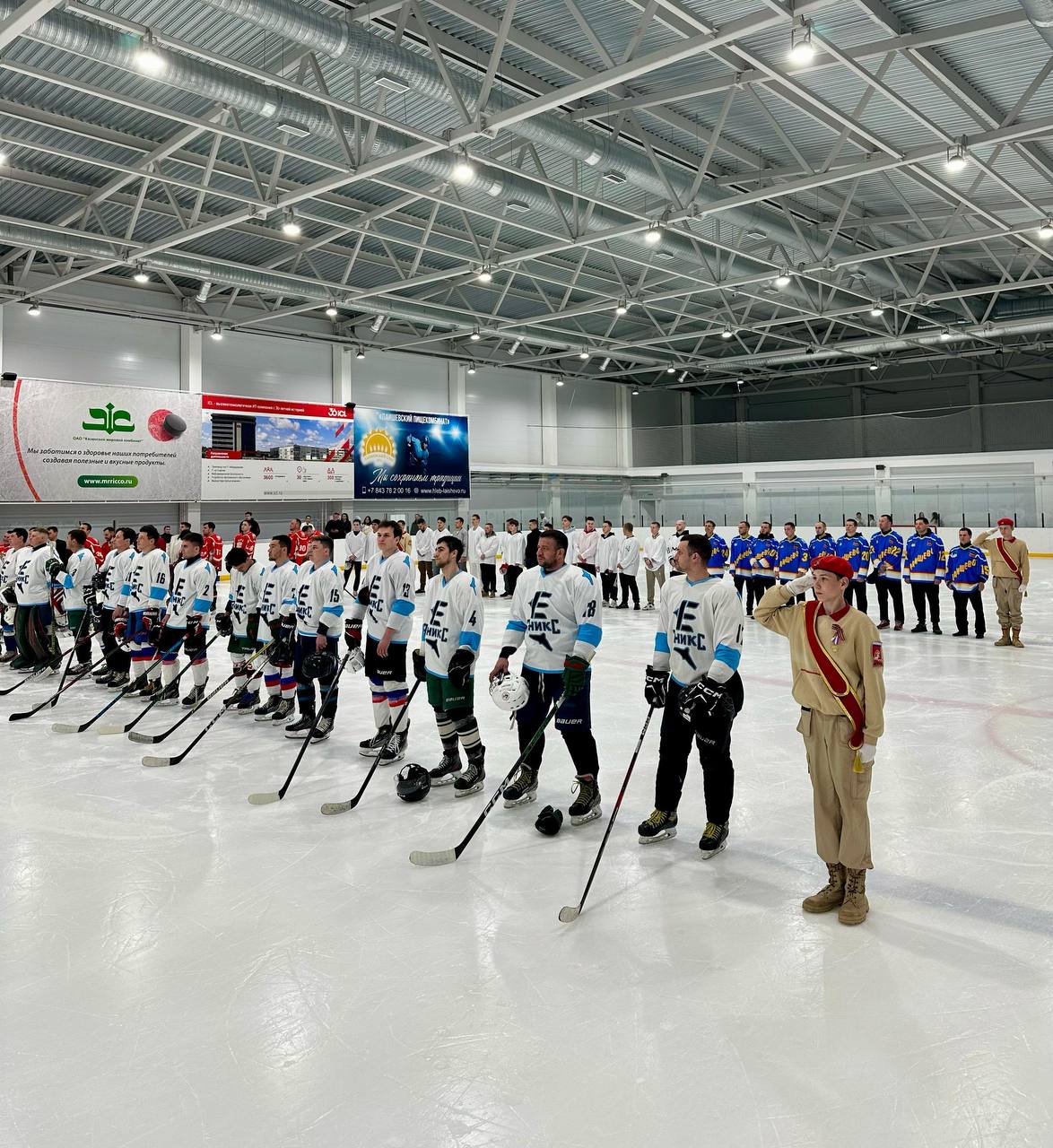 На льду арены города Лаишево местные команды и гости из Казани сразились в хоккее, посвятив турнир 80-летию Победы в Великой Отечественной войне.