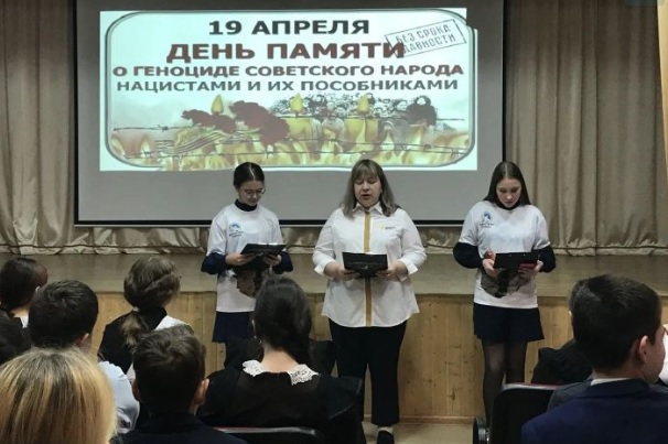 19 апреля в День единых действий в память о геноциде советского народа, совершенном нацистами и их пособниками в годы Великой Отечественной войны советник директора Нармонской школы по воспитанию Альбина Занина, «Волонтеры Победы» и педагог-организатор Марта Валиева провели час памяти «Без срока давности». В рамках памятного мероприятия ребята узнали о важнейших фактах преступлений против мирных советских граждан со стороны нацистов и их пособников в годы Великой Отечественной войны.