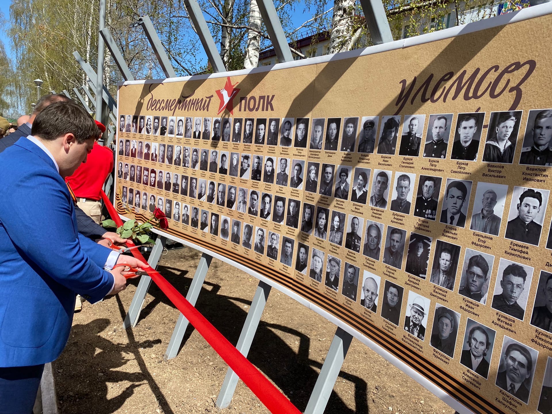 В рамках празднования Дня Великой Победы в Менделеевске открыт еще один стенд «Бессмертный полк». На нем размещены 156 фотографий участников Великой Отечественной войны – уроженцев и жителей Бондюжского района. Всего на аллее 13 стендов, у подножия которых круглый год лежат цветы – жители района приходят сюда, чтобы отдать дань памяти родным и близким.