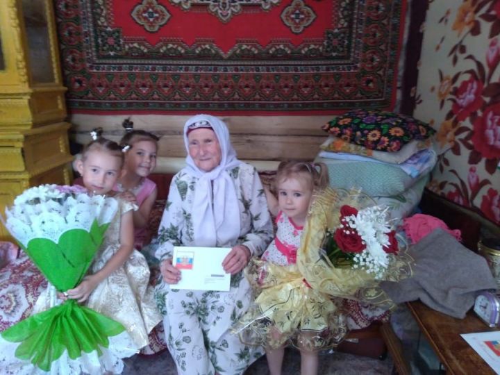 Минеруй Гельметдиновне вручили поздравительное письмо Президента РФ Владимира Путина, а также подарок от имени руководителя исполкома района Алмаза Ахметшина.