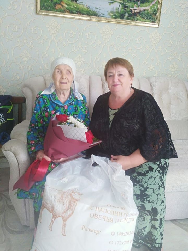Поздравила труженицу тыла с юбилеем заместитель главы района Флюра Ногуманова.