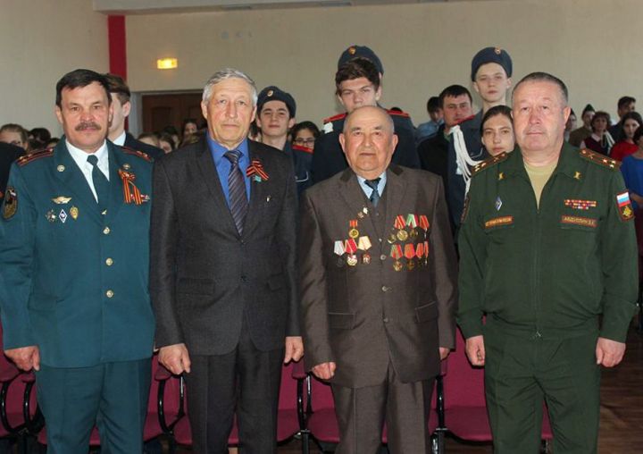 Военком района Загир Абдуллин рассказал школьникам о мощи и новинках современного вооружения армии России. Призвал будущих защитников Отчизны исполнить свой долг перед Родиной. В пример привел земляков, которые служат в подшефной части нашего района в Севастополе. Также рассказал, что сегодня и девушки поступают учиться в военные учебные заведения. Словом, и его младшая дочь пошла по стопам отца и профессию получает в военном училище тыла. В эти дни она готовится к участию в параде на Красной площади. В составе женского батальона она уже третий год будет салютовать Победе у стен Кремля.