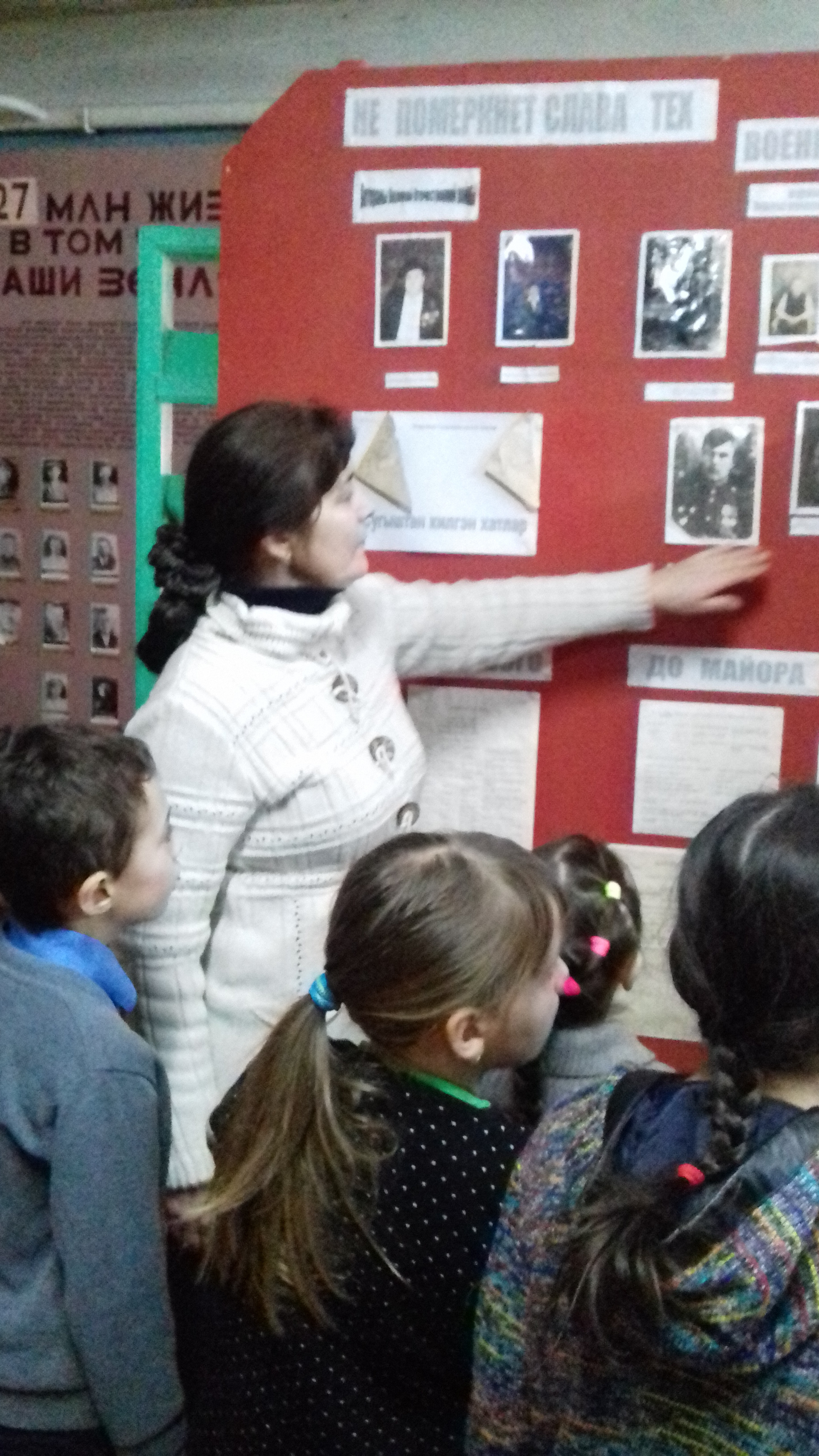 В преддверии Дня Героев Отечества в музее, действующем при Кляшевской поселенческой библиотеке, был проведен урок мужества “Героями не рождаются, героями становятся”, посвященный этой славной дате. Читателей младшего школьного возраста познакомили с понятиями “героизм”, “герои труда”, “герои войны”. Детям рассказали о односельчанах, показавших героизм на фронтах Великой Отечественной войны. Подробно описали подвиг, который совершил односельчанин Салахутдин Валиуллин. Ребята с интересом рассмотрели музейные экспозиции о славных трудовых и боевых дорогах своих предков.