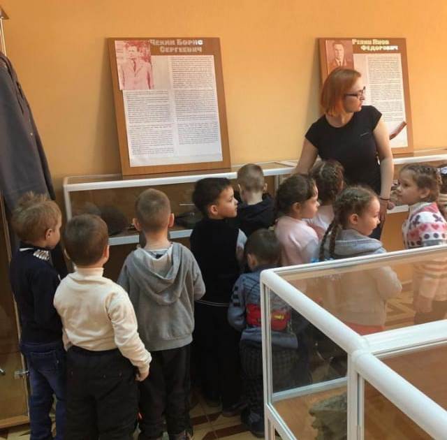 В преддверии праздника Дня Победы дети детского сада "Ландыш" посетили Краеведческий музей. В экспозиции представлены личные вещи, документы, фотографии, письма с фронта, книги, обмундирование, награды участников боевых действий, оружие 1941-1945 гг.