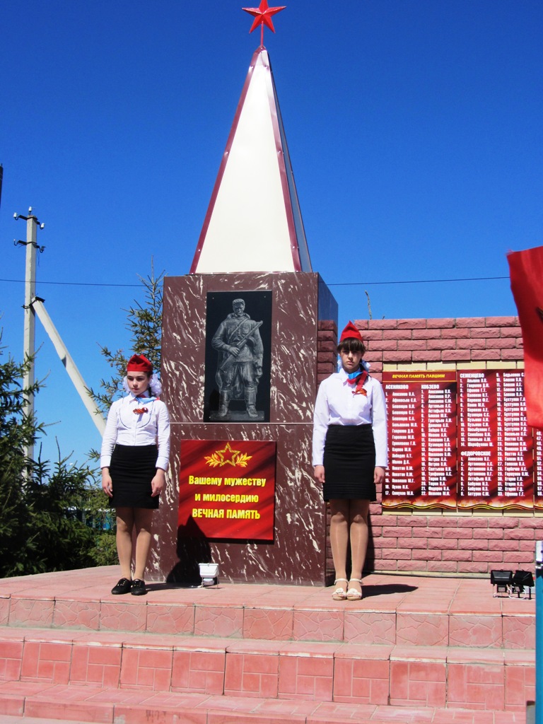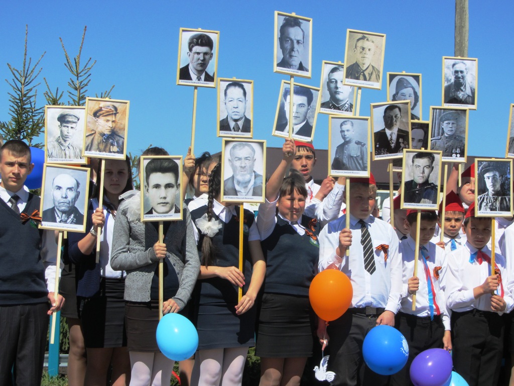 Торжественный митинг, посвященный 70-летию Великой Победы, открыл директор школы Михаил Серяков. По заведенной традиции, учащиеся школы читали стихи, а ведущие рассказывали об истории Великой Отечественной войны, о вкладе жителей села в Победу. Из 134 ушедших на фронт односельчан не вернулись назад 97. Школьники и учителя к этому дню изготовили портреты своих родных и близких – участников войны - и с «Бессмертным полком» пришли к участникам митинга. Это было особенно волнующее шествие.