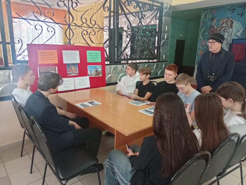 На мероприятии было рассказано ребятам о знаменитой битве за освобождение Сталинграда. Ребята узнали о том, что продолжалась она 200 дней и ночей. О доме Павлова, которому дали фамилию сержанта Павлова, оборонявшего дом, о главной высоте - Мамаеве кургане. На военных картах он обозначался как высота 102 и имел важное стратегическое значение: с его вершины хорошо просматривалась и простреливалась прилегающая территория и переправа через Волгу. Узнали об отважных бойцах, которые бились за каждую улицу и дом, о том, что в Сталинградской битве проявляли мужество не только взрослые, но и дети.