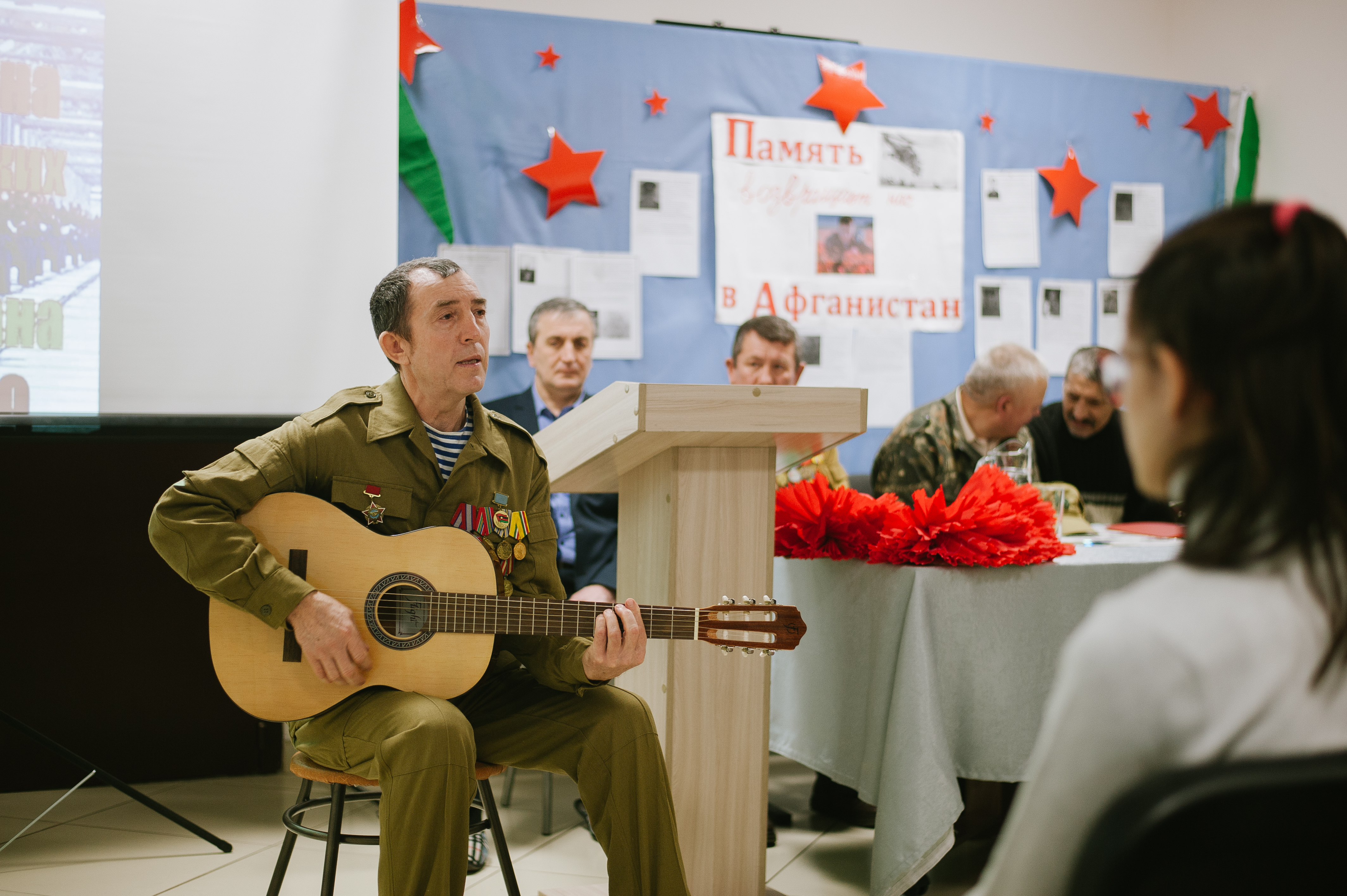 Виктор Петухов прочитал собственного сочинения про танкистов «Молодость в горах». Прозвучала песня под гитару «Черный тюльпан» в исполнении Геннадия Лелюкова.