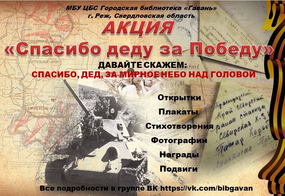 Верхне-Каменская библиотека Черемшанского района присоединилась к сетевой Акции «Спасибо деду за Победу!». Организатор акции – МБУ ЦБС Городская библиотека «Гавань» г. Реж Свердловской обл.