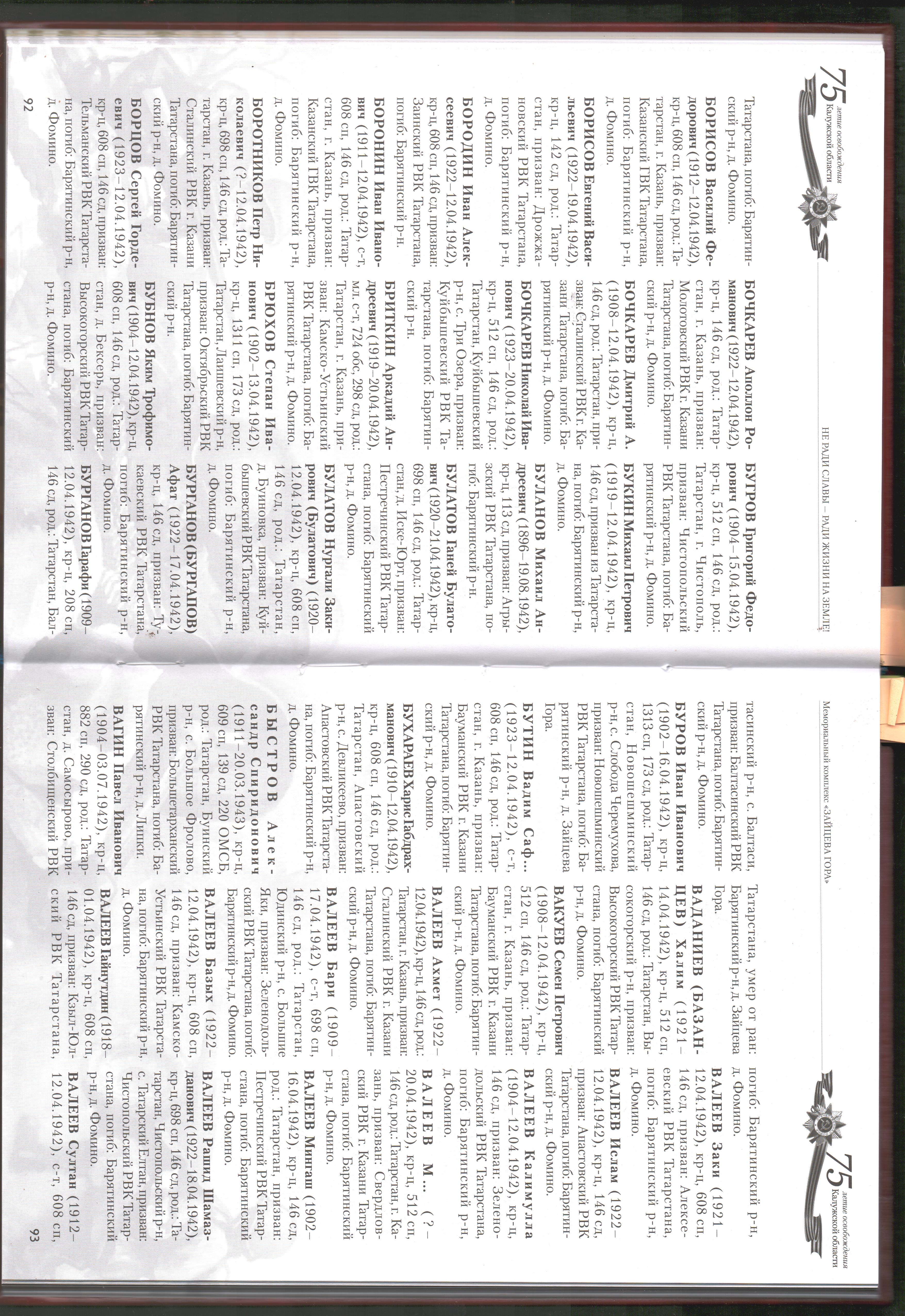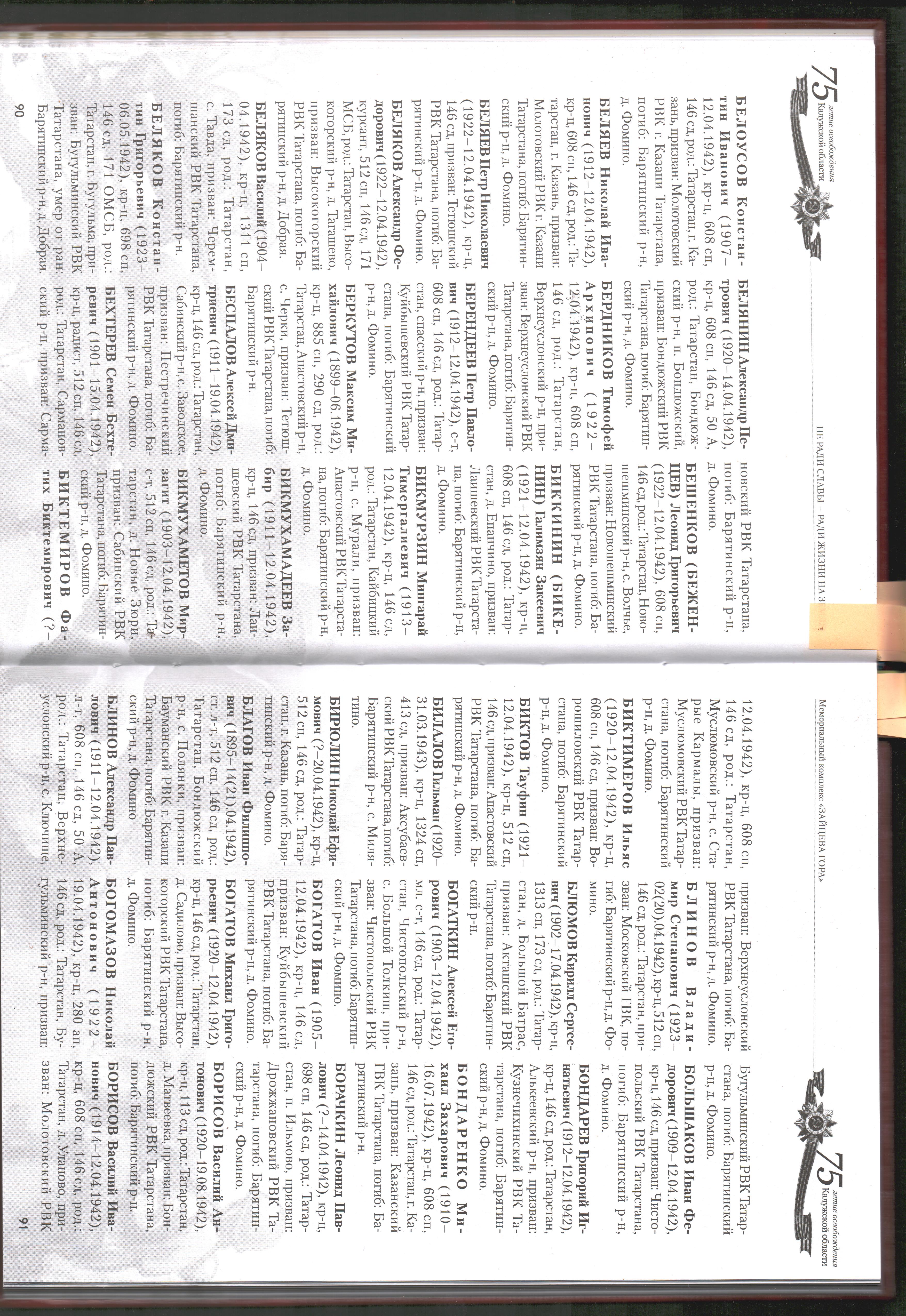 В продолжение рубрики "Вернувшиеся имена героев" представляем списки погибших солдат в годы Великой Отечественной войны, захороненных в д. Зайцева гора  Барятинского района Калужской области, среди которых есть наши земляки. Возможно, кто-то найдёт имена своих близких.